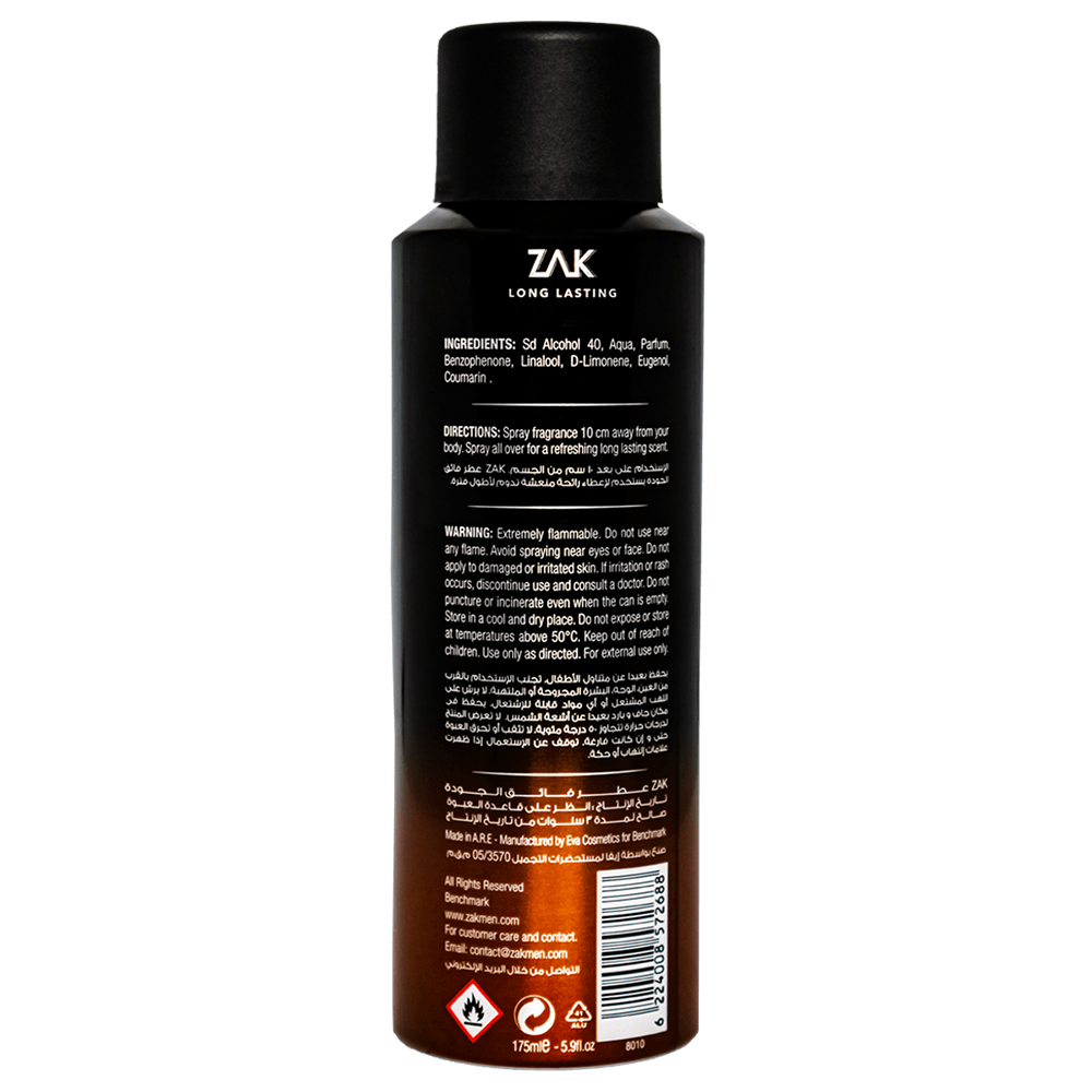 لو بتدور على اسبراي رجالي بانتعاش التلج، وسعر مناسب، وثبات معقول، يبقى زاك ايس ١٧٥مل هو الاختيار المثالي ليك.