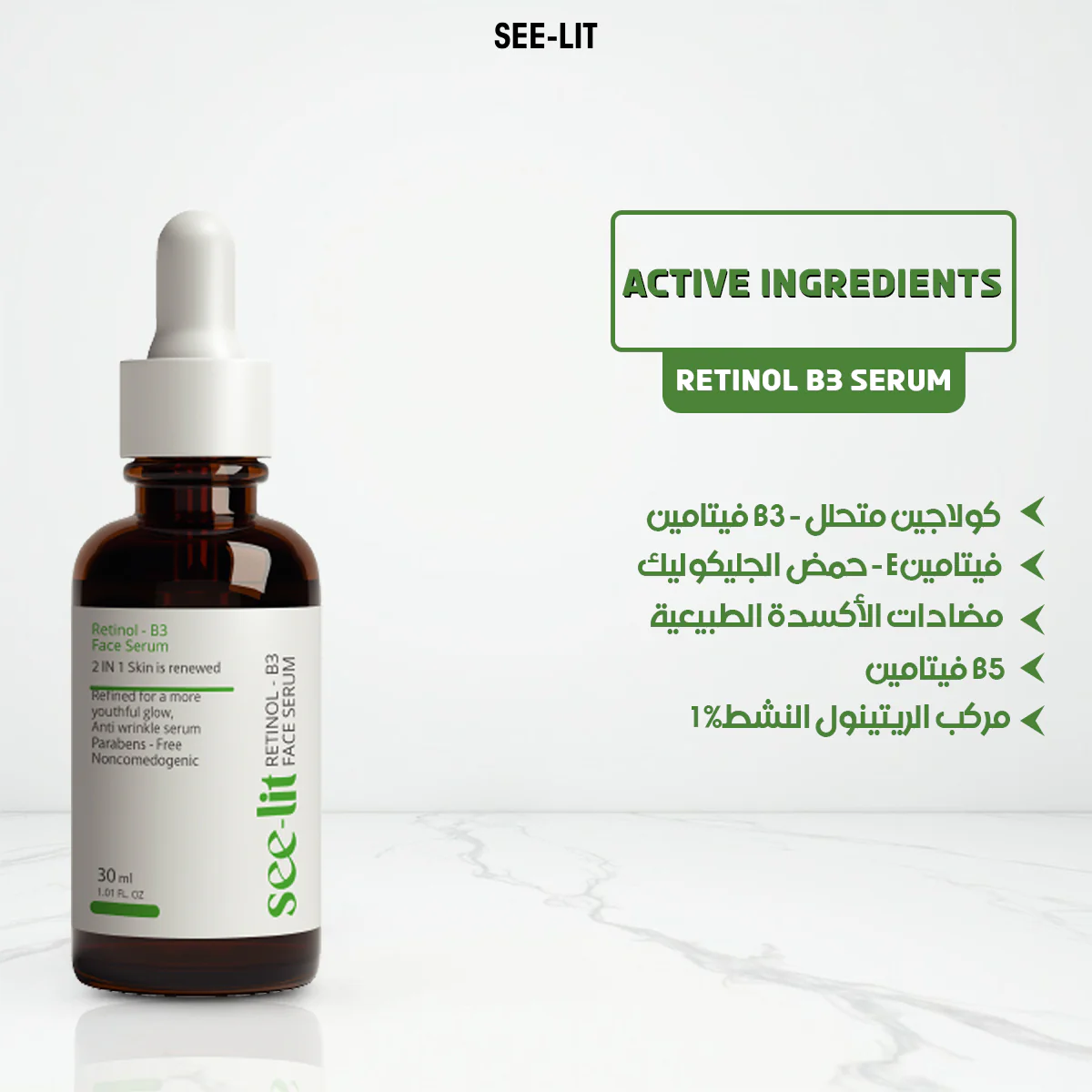 تركيبة سي ليت ريتينول See Lit Retinol Serum 30ml: مكونات فعالة بتشتغل على كل طبقات البشرة