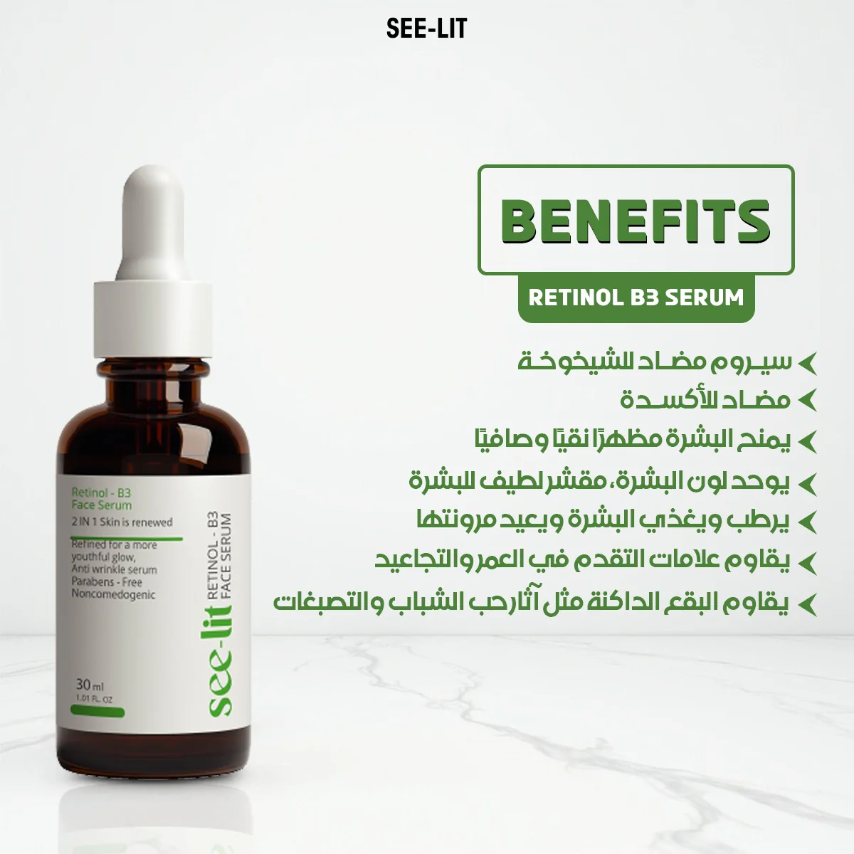 فوائد سي ليت سيرم ريتينول ٣٠مل See Lit Retinol Serum 30ml: نتائج ملموسة من أول أسبوع