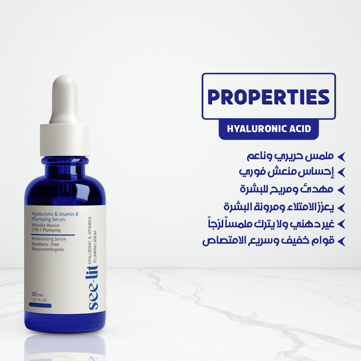 مكونات سي ليت سيرم الفعالة وتأثيرها على البشرة See Lit Hyaluronic and Vitamin B Plumping Serum 30ml