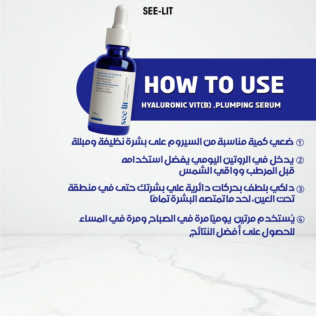 مكونات سي ليت سيرم الفعالة وتأثيرها على البشرة See Lit Hyaluronic and Vitamin B Plumping Serum 30ml