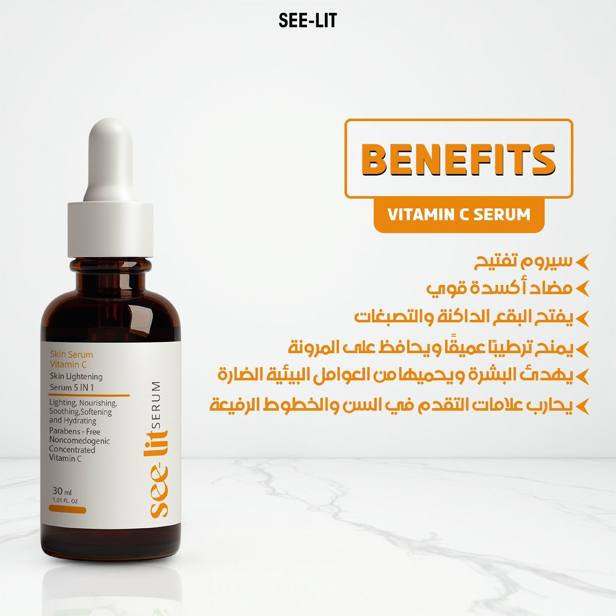 سي ليت سيرم لتفتيح البشرة ٣٠مل فيتامين سي ٥*١: إشراقة طبيعية في كل نقطة See Lit Vitamin C Skin lightening Serum 30ml