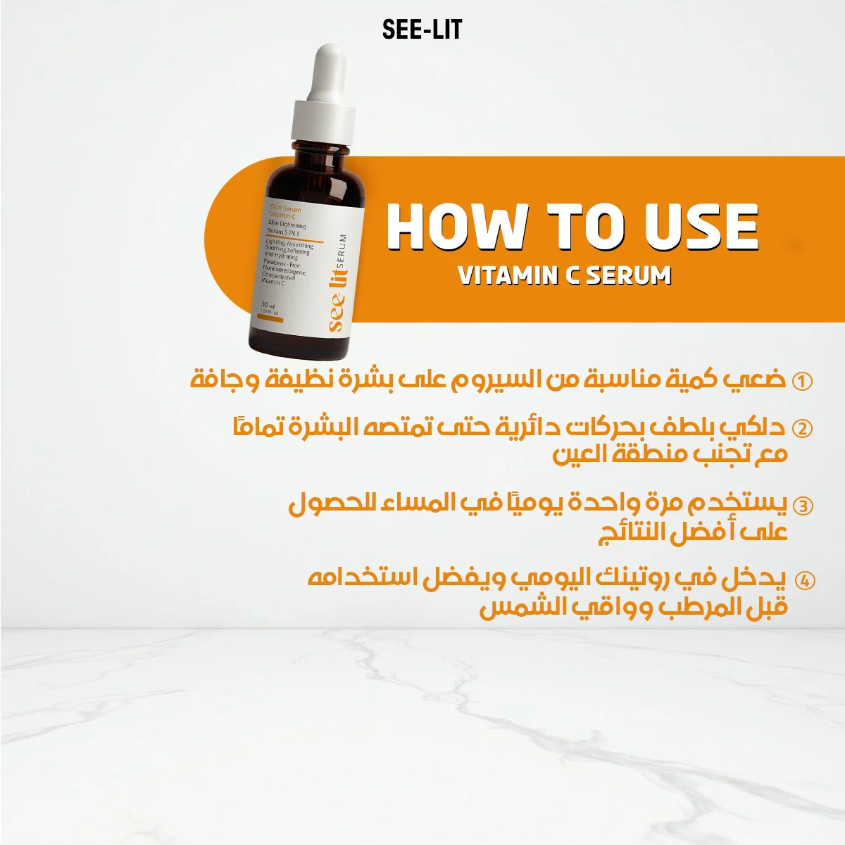 طريقة استخدام سي ليت سيرم فيتامين سي: خطوات بسيطة لنتيجة مثالية See Lit Vitamin C Skin lightening Serum 30ml