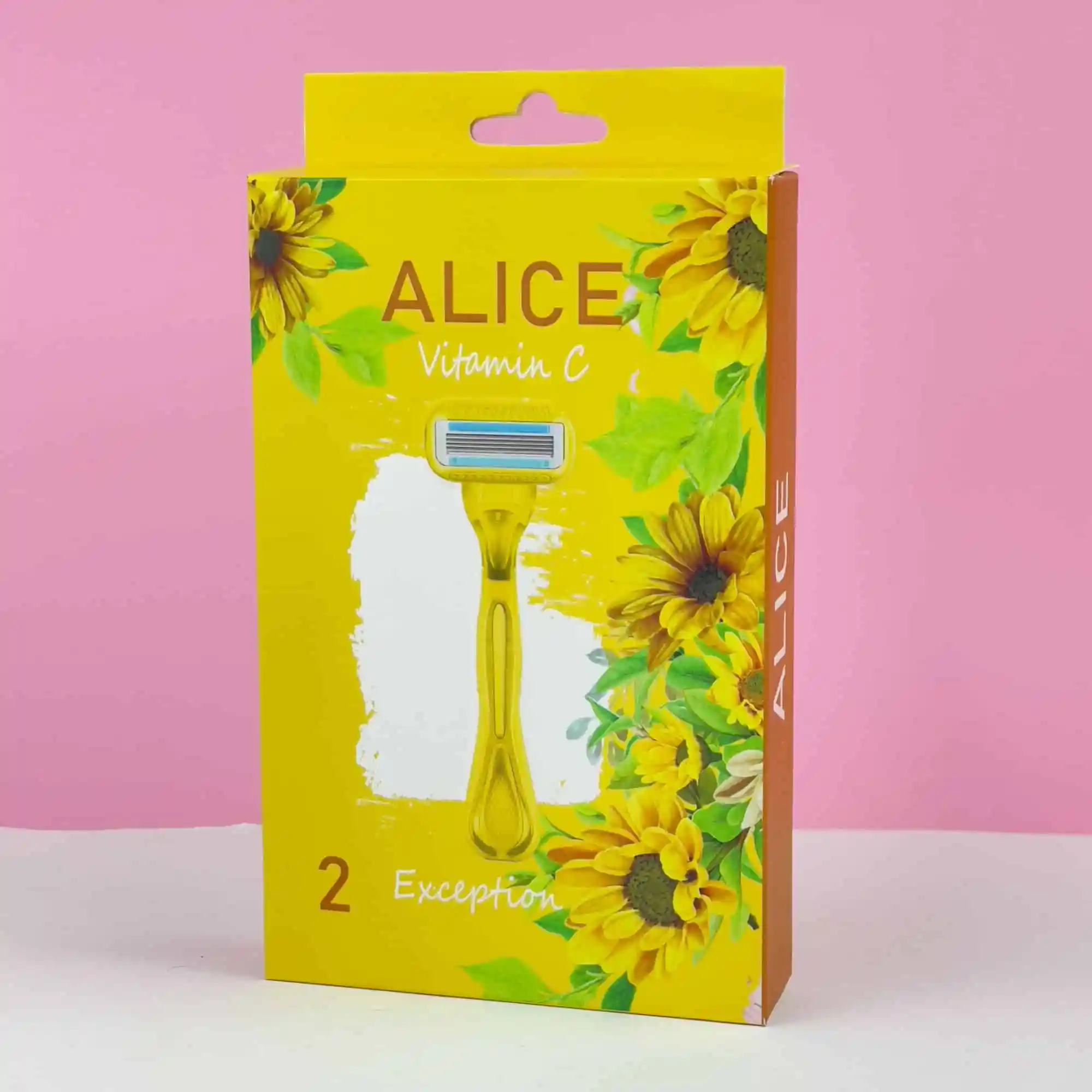 ماكينة اليس ٢ق بفيتامين سيALICE Blades 2 Exception Vitamin C – حلاقة ناعمة وترطيب فوري! شفرات مزدوجة دقيقة، وشريط فيتامين سي بيهدي البشرة ويمنع التهيج. مثالية للبشرة الحساسة، وسهلة الاستخدام في كل مكان.