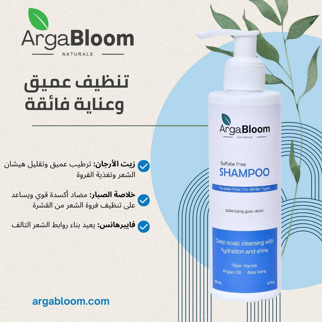 شامبو أرجابلوم ٢٠٠مل فري سلفات بزيت الأرجان والألوفيرا Arga Bloom Naturals Sulfate Free Shampoo 200ml: سر النعومة الطبيعية لشعر صحي ولامع من أول غسلة