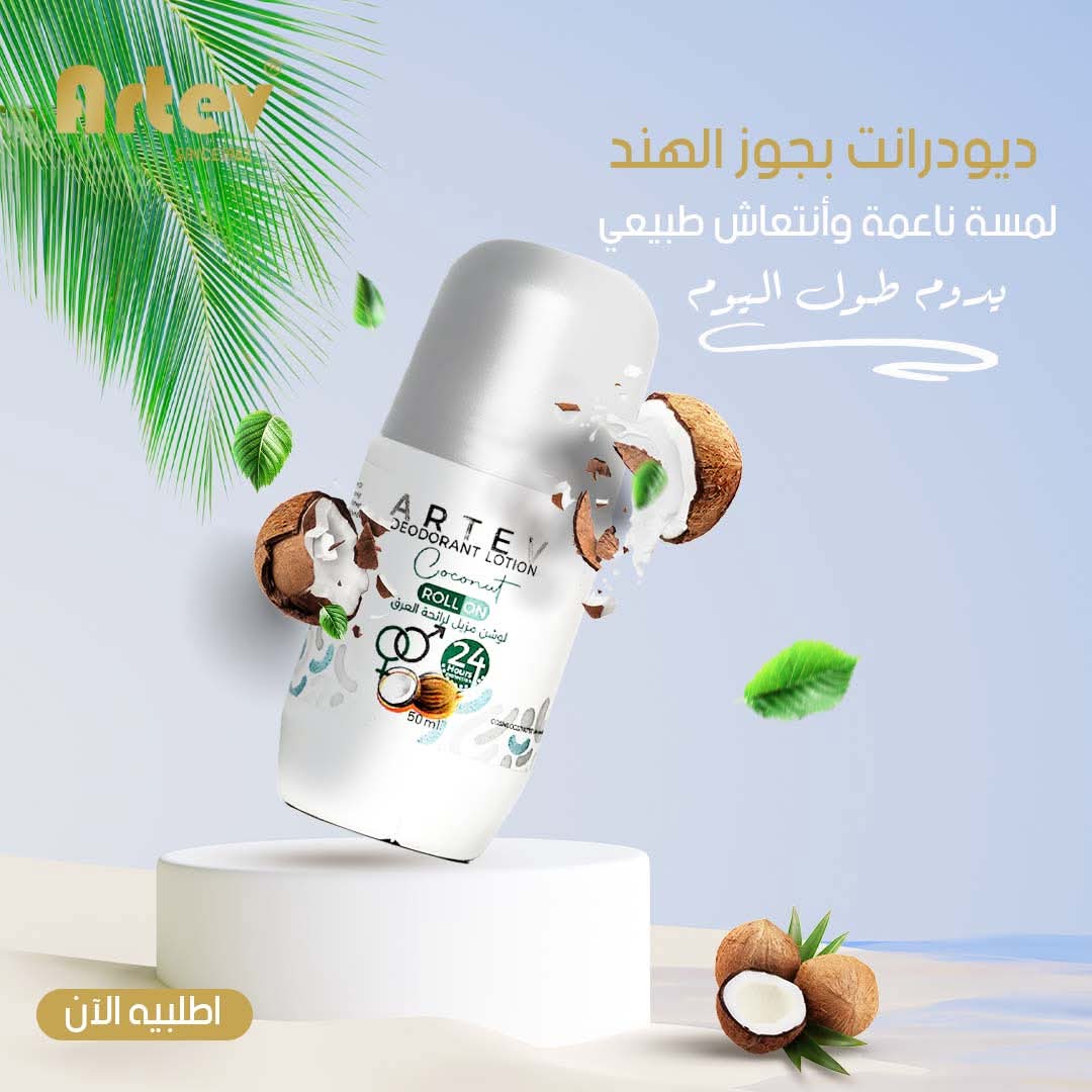 ارتف رول أون ٥٠ مل بجوز الهند: حماية طبيعية وانتعاش يدوم طول اليوم Artev deodorant Coconut 50 ml