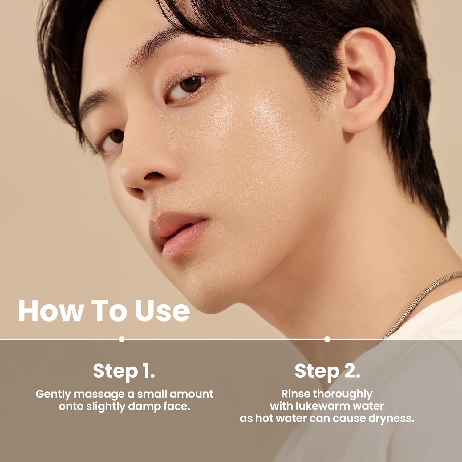 الغسول ده معمول بتركيبة رغوية ناعمة، بدرجة حموضة مثالية (5.5)، يعني مناسب لكل أنواع البشرة حتى الحساسة منها. بيحتوي على مكونات طبيعية زي مستخلص أوراق البريلا ونخالة الأرز، اللي بيشتغلوا على تهدئة البشرة وتنظيف المسام من الأعماق. كمان فيه تقنية أكواكسيل الحاصلة على براءة اختراع، واللي بتحافظ على ترطيب البشرة وتوازنها طول اليوم.