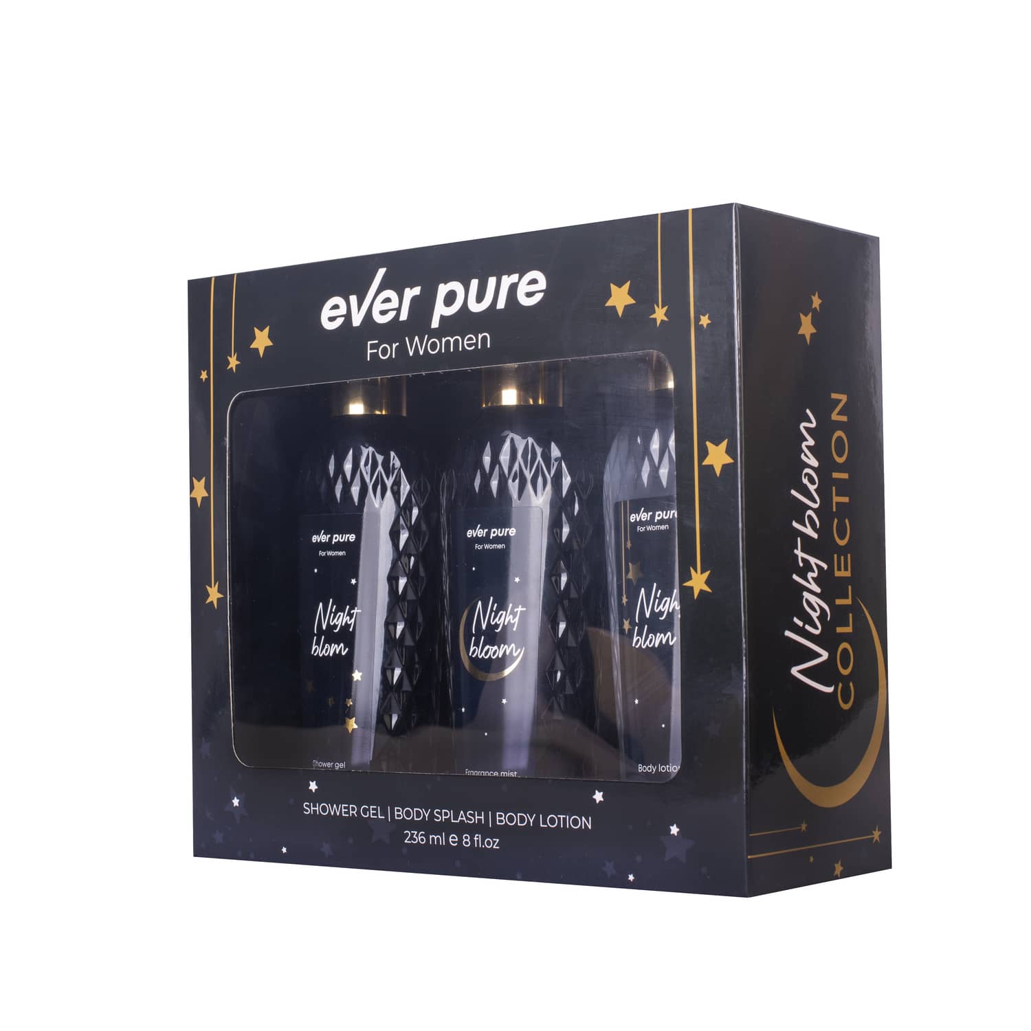 طقم إيفر بيور نايت بلوم – ٣ قطع فخامة ليلية، ترطيب عميق، ورائحة ساحرة تدوم Box Ever Pure Night Blom Body Lotion + Body Splash + Shower Gel 236ml