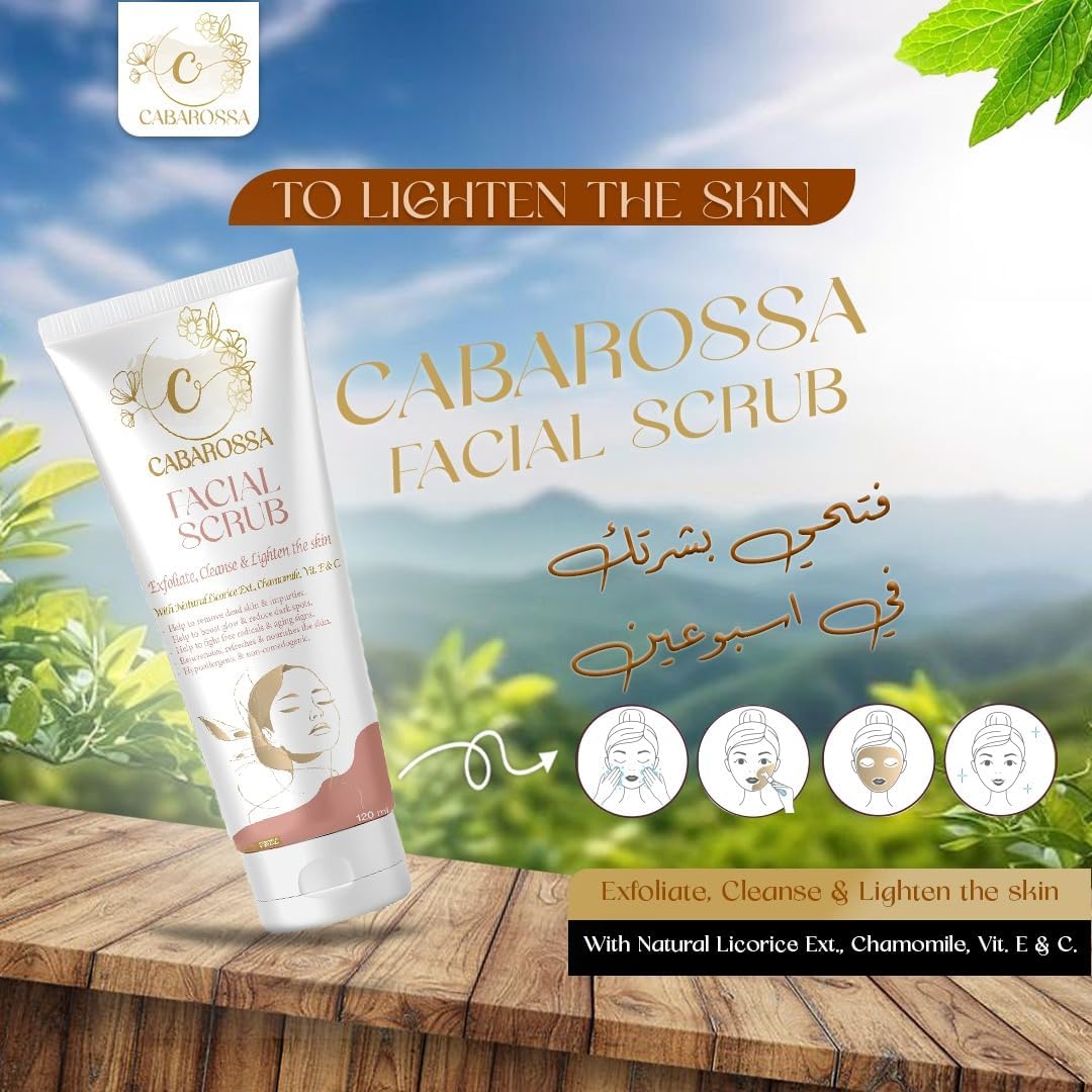 كاباروزا مقشر للوجه 120 جم Cabarossa Facial Scrub 120g – سر النعومة والتفتيح لبشرة صحية ومشرقة