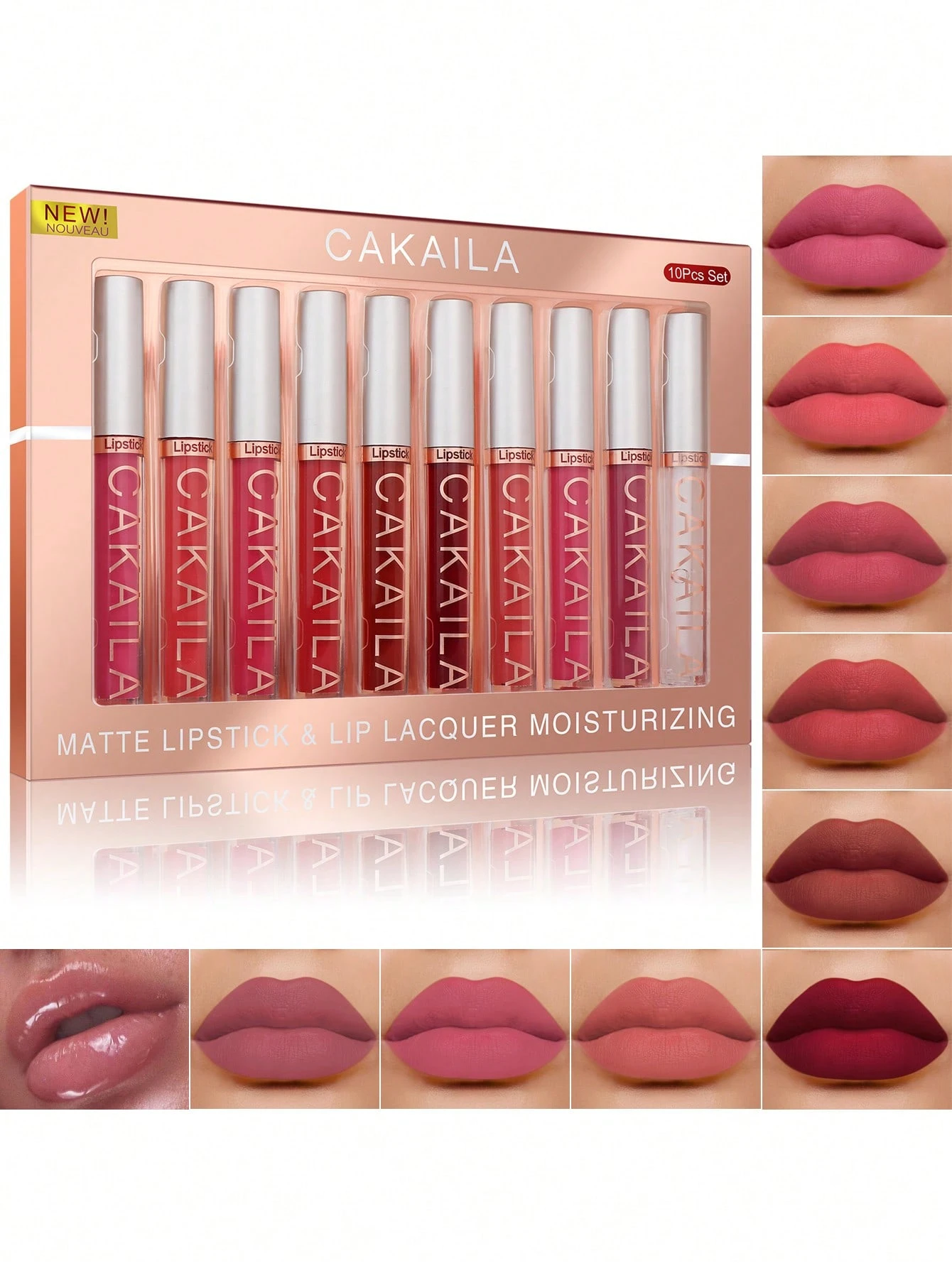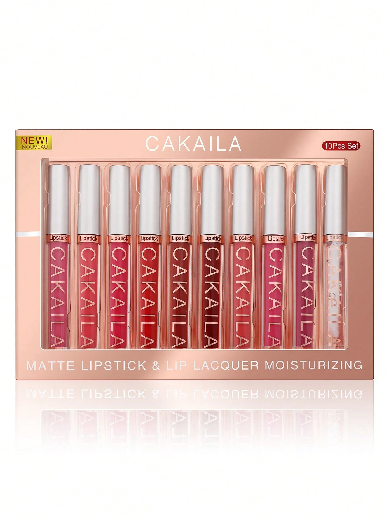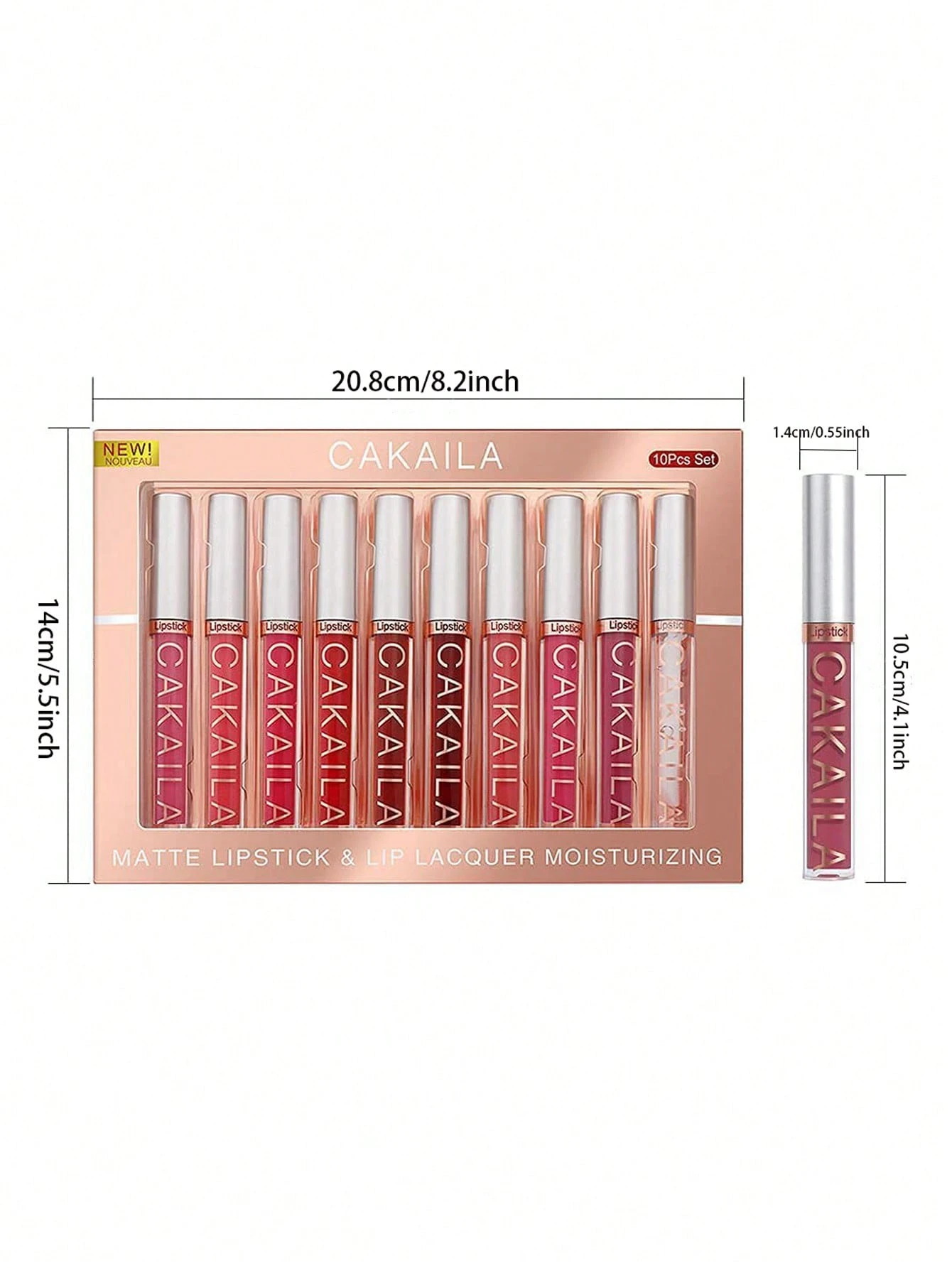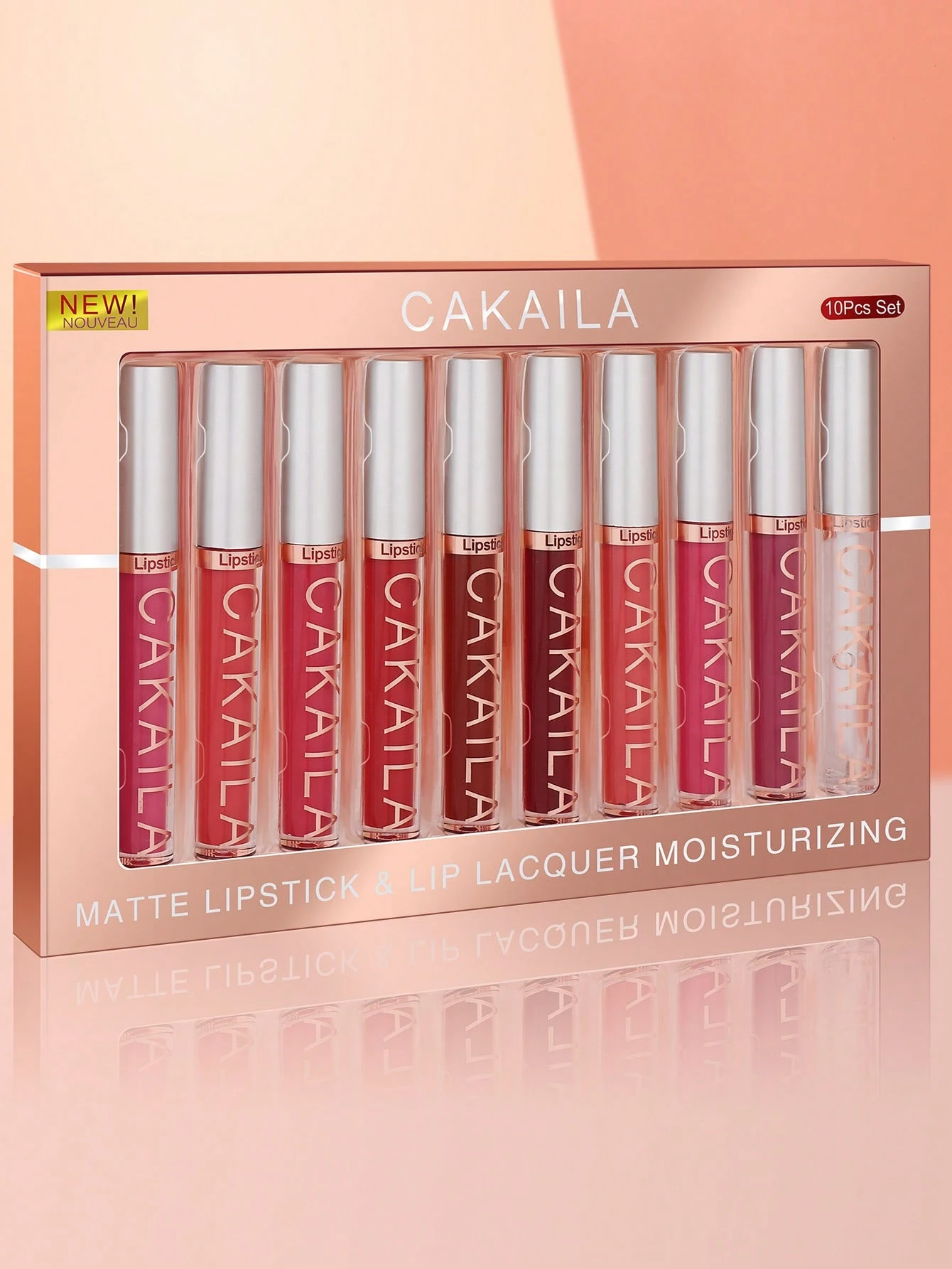 CAKAILA Matte Lipstick and Lip Lacquer Moisturizing 10 pcs