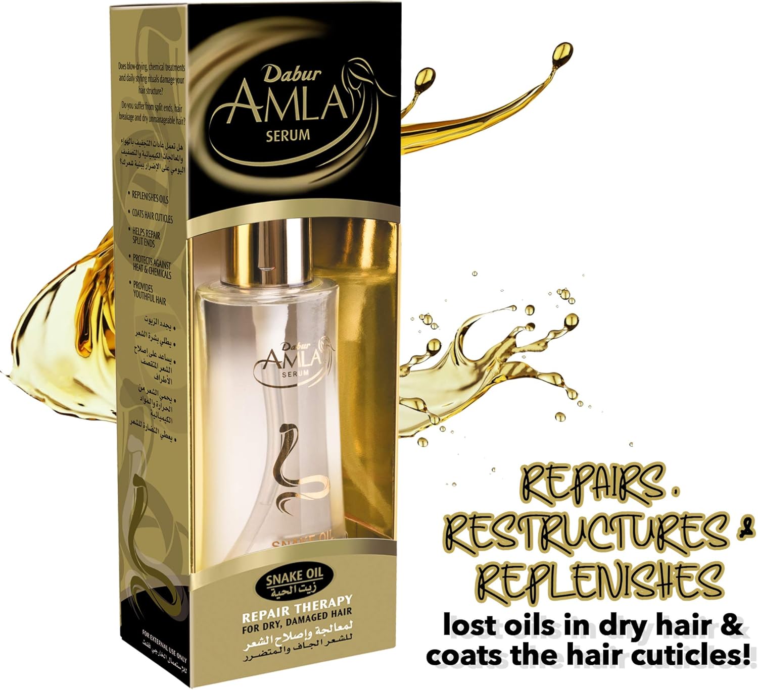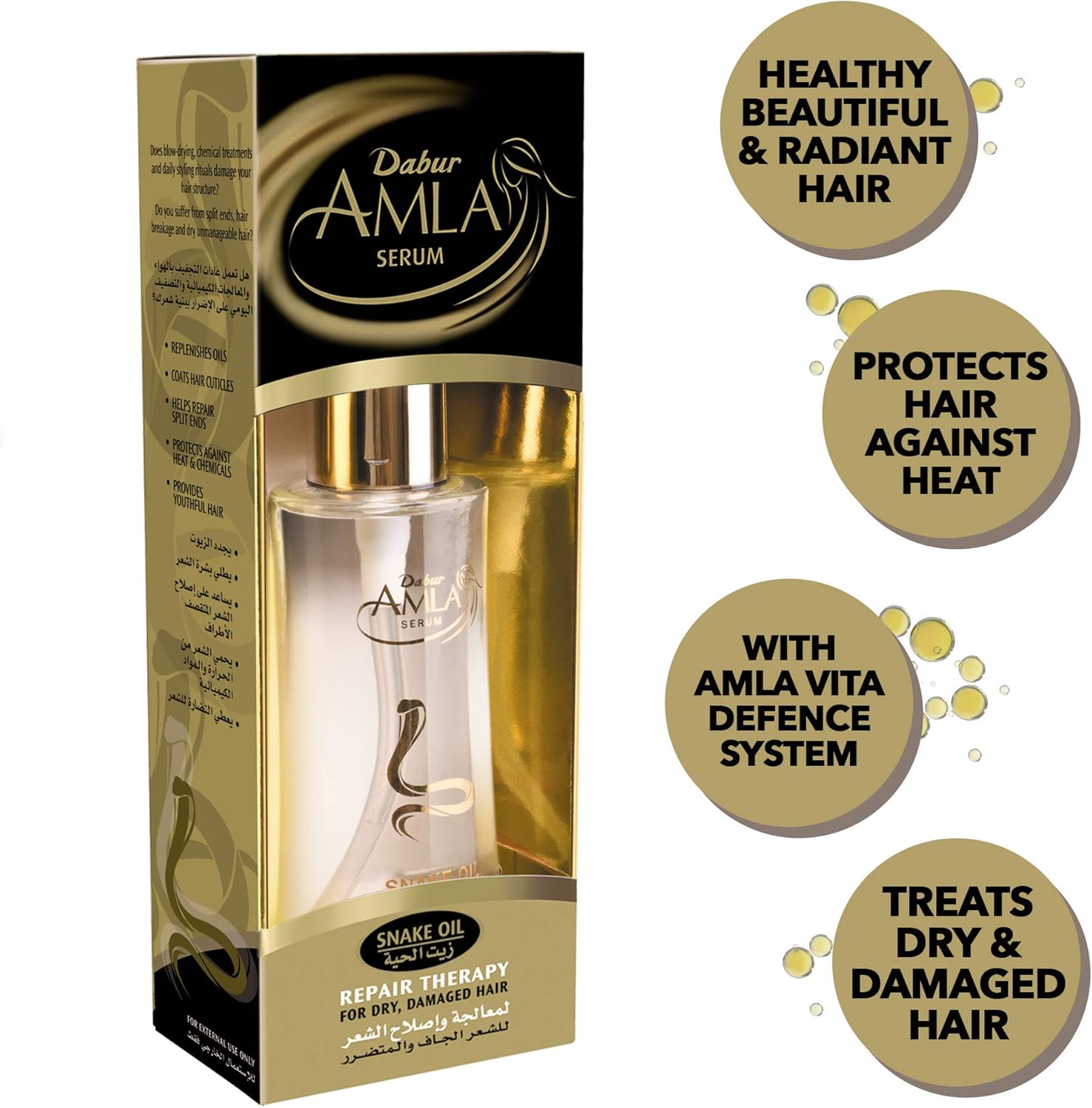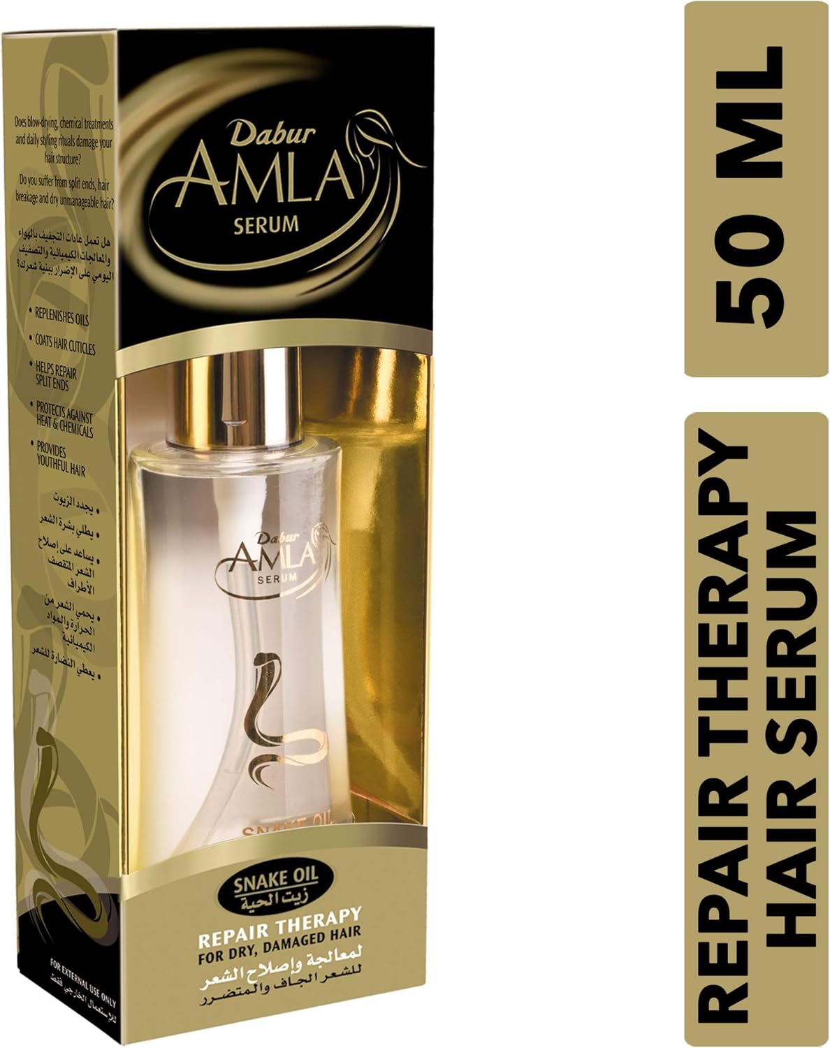 املا سيرم شعر ٥٠مل بزيت الحية Dabur Amla Snake Oil Serum 50ml لمعالجة وإصلاح الشعر التالف :