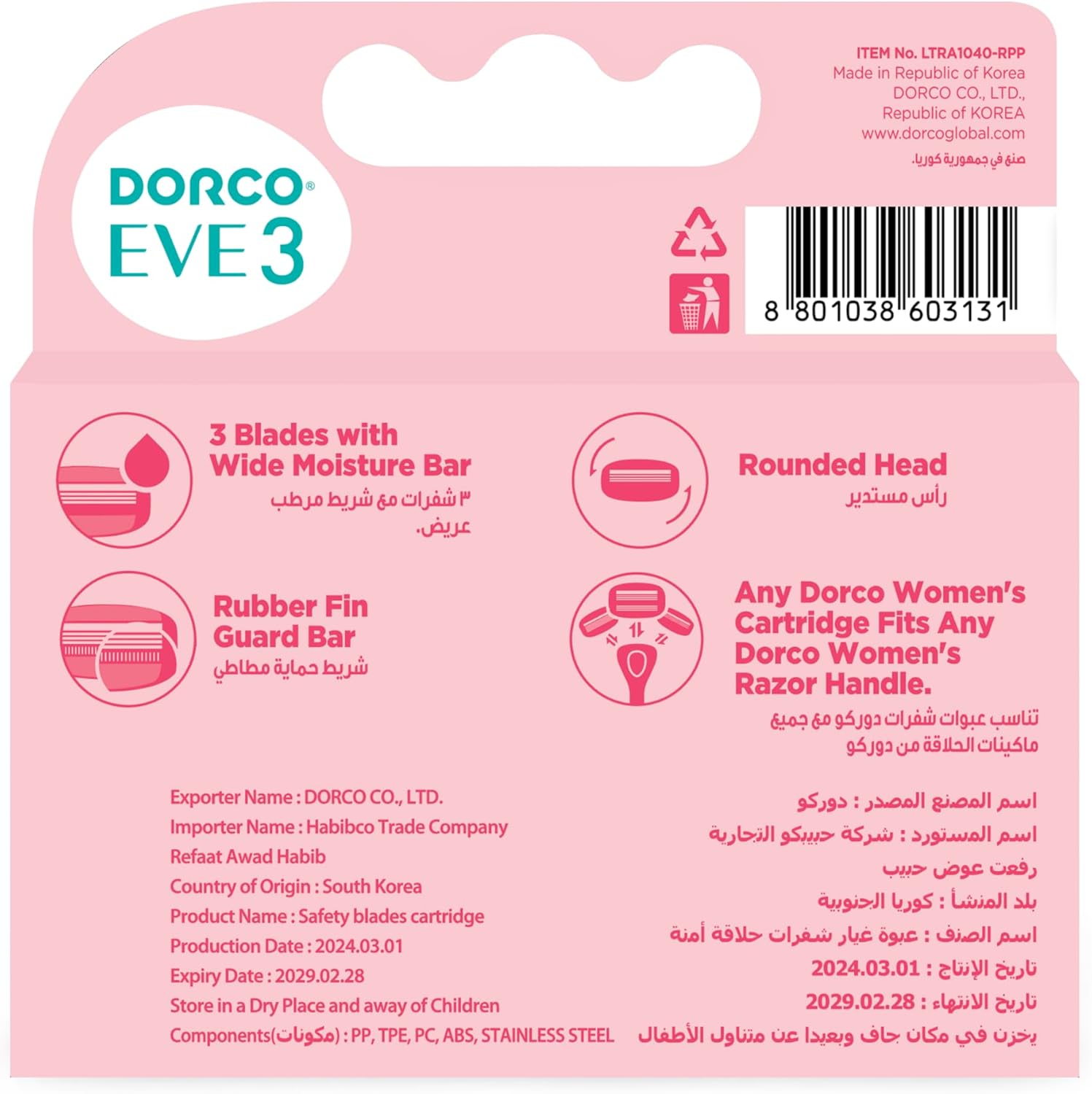 دوركو إيفي ٣ غيار ٤ قطع حريميDorco Triple Blades Razors CARTRIDGE SYS 3B 4C : نعومة فائقة وحلاقة آمنة لكل بنت