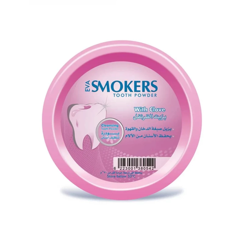 فوائد بودرة إيفا سموكرز بالقرنفل للمدخنين ومحبي القهوة Eva Smoker Tooth Powder With Clove 40Gm