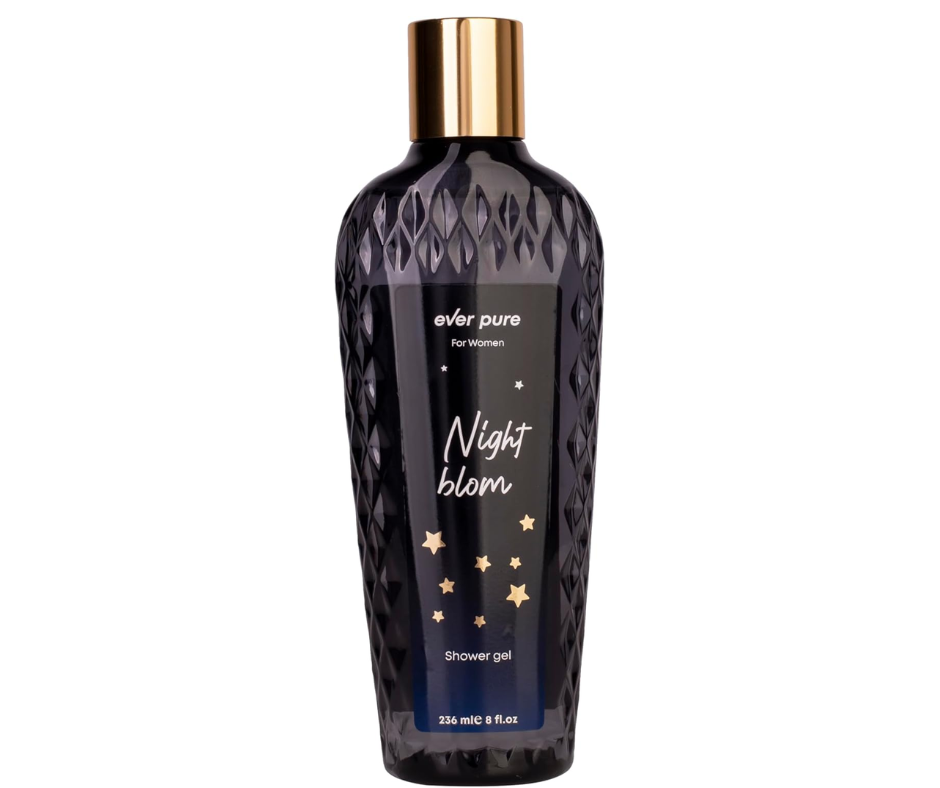 إيفر بيور شاور جيل نايت بلووم Ever Pure Shower Gel For Women Night Bloom 236ml– ريحة زهور هادية تهدي أعصابك، وترطيب يفضل معاكي طول اليوم! تركيبة ناعمة بالجليسرين، تنظف جسمك وتسيبه ناعم زي الحرير. خالي من الكبريتات، آمن للبشرة الحساسة، وريحتك تفضل فواحة من أول اليوم لآخره. دلعي نفسك كل ليلة بلمسة هدوء!