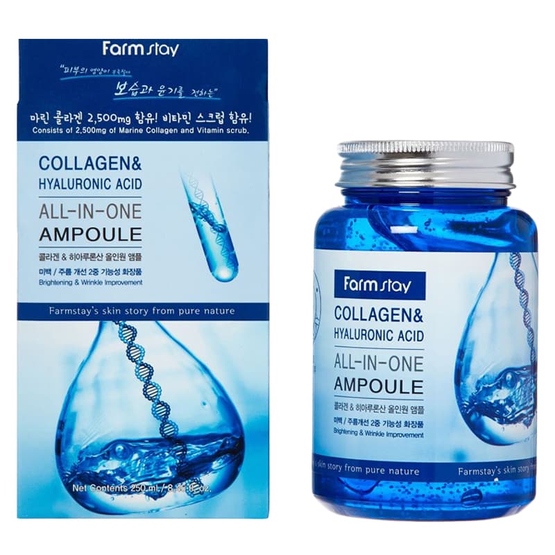 Tags: FARM STAY Collagen and Hyaluronic Acid All In One Ampoule 250ML, فارم ستاي كولاجین+ھیالورونیك برطمان ٢٥٠مل