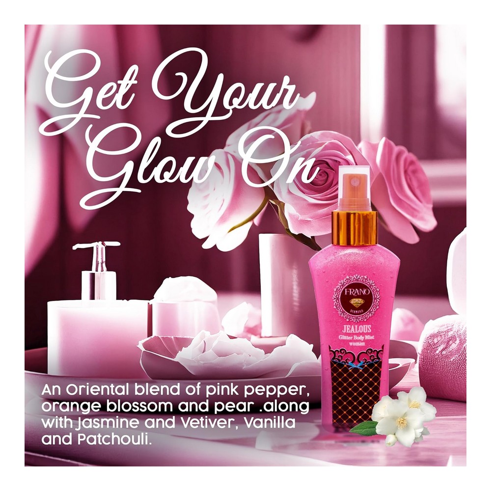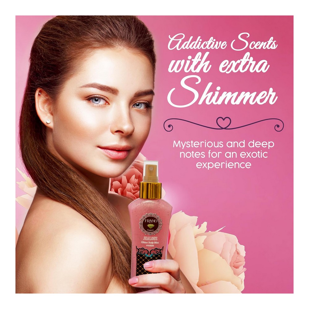 فرانو بادي ميست جليتر ٢٥٠مل جيلوس Frano Diamond Shimmer Jealous Body Mist 250ml: بخاخ الجسم اللي هيخليكي دايمًا متألقة بريحة فخمة ولمعة ناعمة