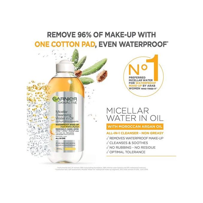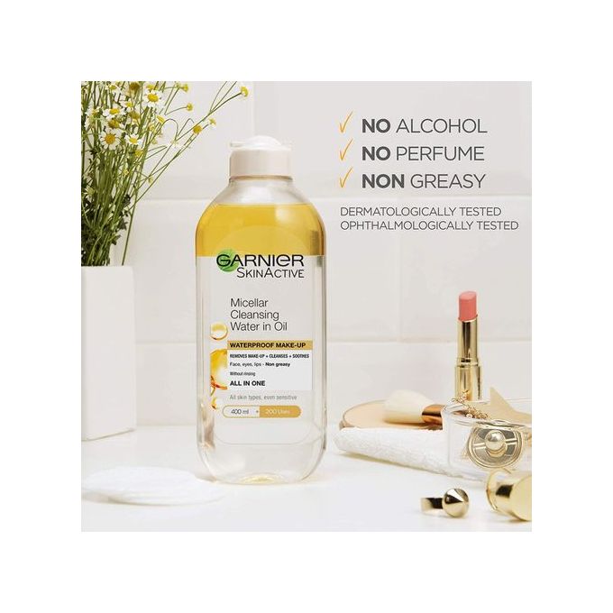 إزالة المكياج الثقيل من غير فرك ولا تهيج Garnier Micellar Oil-Infused Cleansing Water 400ml