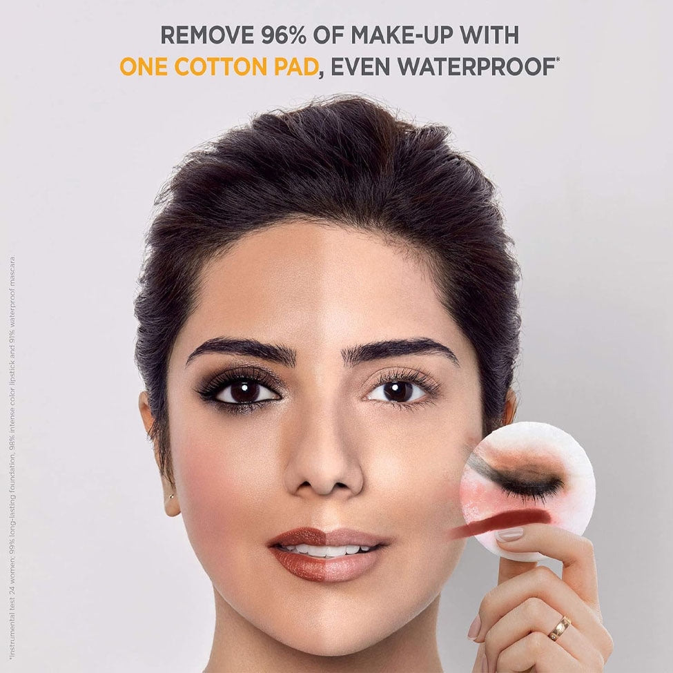 العبوة الصغيرة دي فيها قوة كبيرة، بتشيل الميكب من العين والشفايف والوش كله في خطوة واحدة، من غير ما تحتاجي تغسلي وشك بعدها. يعني لو راجعة من خروجة أو يوم شغل طويل، المنتج ده هيكون صديقك اللي بيخلّصك من الميكب في ثواني، ويسيبلك بشرة نضيفة ومنتعشة.