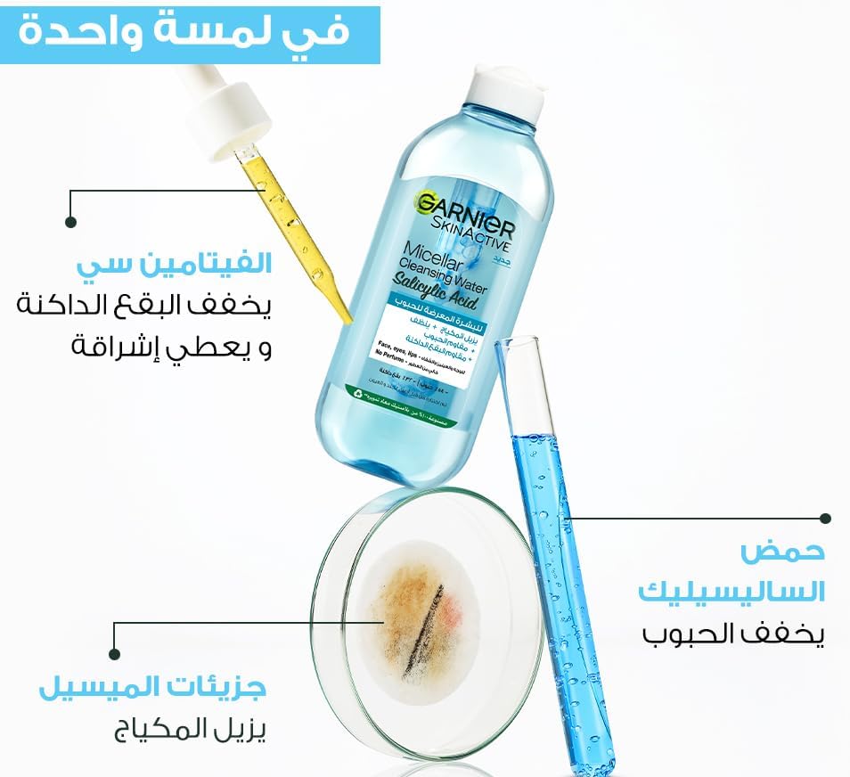 غارنييه ماء ميسيلار بحمض الساليسيليك Garnier Salicylic Acid Micellar Cleansing Water 400ml : الحل الأمثل لتنظيف البشرة بعمق