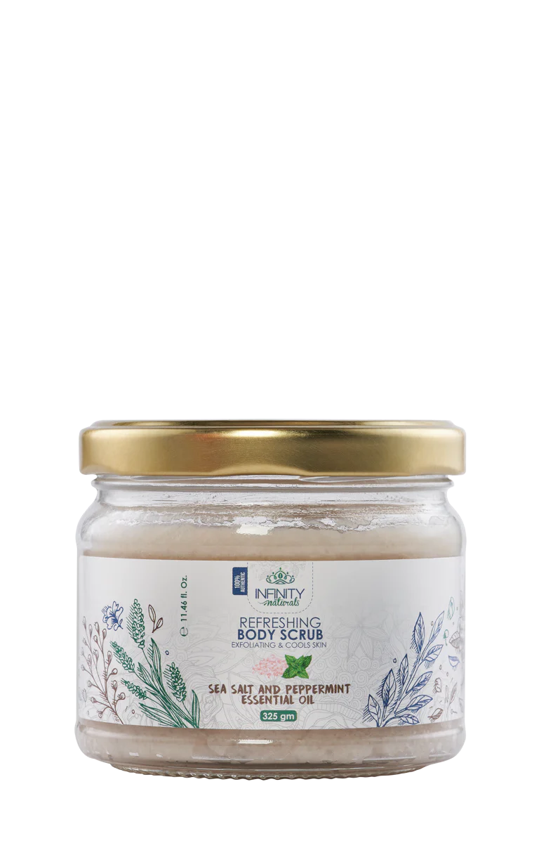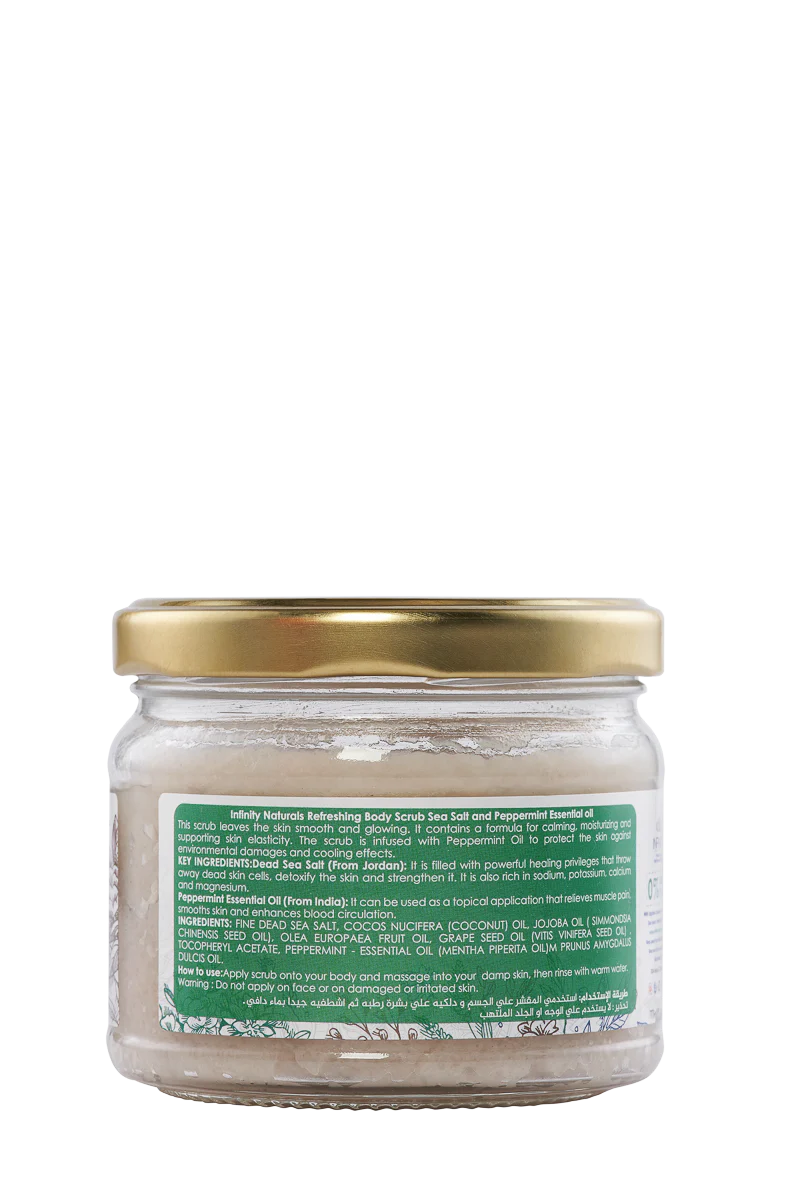 مكونات انفینیتي ناتشورال: تركيبة طبيعية فعالة Infinity Body Scrub with Sea Salt and Peppermint 325gm