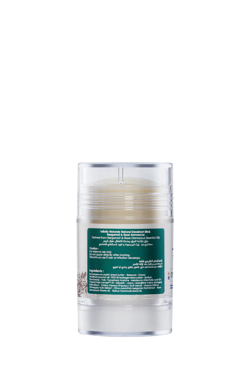 انفینیتي ناتشورال مزيل ستيك ٦٠جم برجموت وورد Infinity Deodorant Stick Bergamot and Rose Damascus 60gm: انتعاش فاخر وحماية طبيعية برائحة ملكية