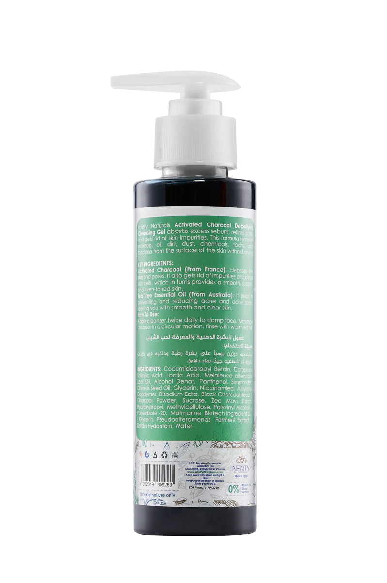 انفینیتي ناتشورال غسول جِل الفحم ٢٠٠مل Infinity Detoxifying Cleansing Gel Activated Charcoal: تنظيف عميق للبشرة الدهنية والمسام الواسعة