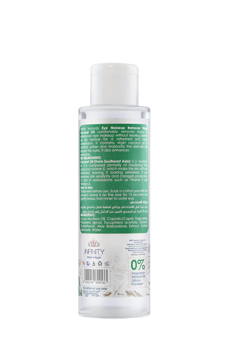 انفینيتى ناتشورال میسلار للعين ٢٠٠مل بجوز الهند INFINITY EYE MAKUP REMOVER COCONUT OIL 200M: تنظيف ناعم وترطيب عميق لمنطقة العين الحساسة