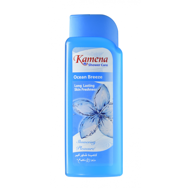 كامينا أوشن بريز ٧٥٠ملKamena Shower Care Ocean Breeze – 750m – ريحة البحر وانتِ في بيتك! شاور جل منعش بتركيبة فريدة من نسيم البحر، بينضف جسمك بعمق، يرطّب بشرتك، ويخلي ريحتك فريش طول اليوم. رغوة ناعمة، حجم اقتصادي، ومناسب لكل أنواع البشرة. جربيه وهتحسي إنك في أجازة كل يوم!