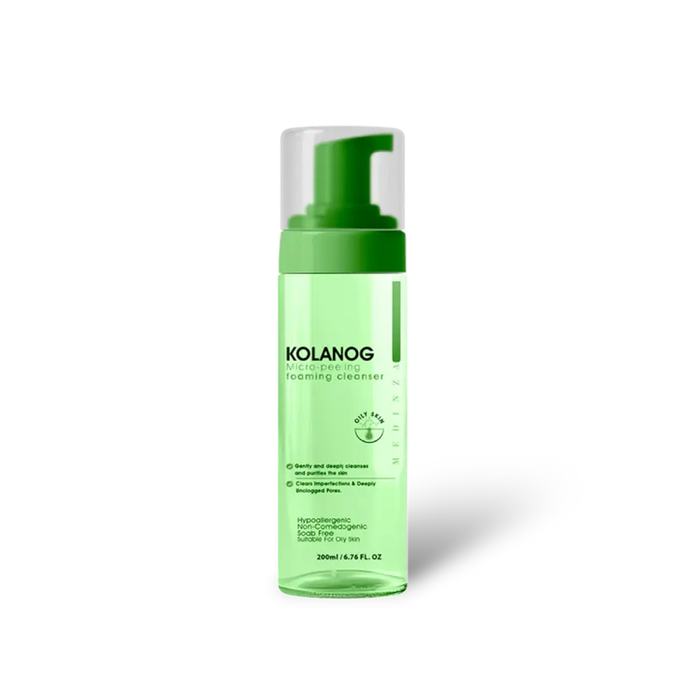 كولانوج فومينج ١٥٠مل للبشرة الدهنية Kolanog MICRO-PEELING FOAMING CLEANSER 150ML “تنظيف عميق وتحكم في الدهون! تركيبة فوم خفيفة بحمض الساليسيليك والزنك تنظف المسام وتقلل اللمعان من غير ما تجفف بشرتك. لبشرة مات، نضيفة، وجاهزة طول اليوم!”