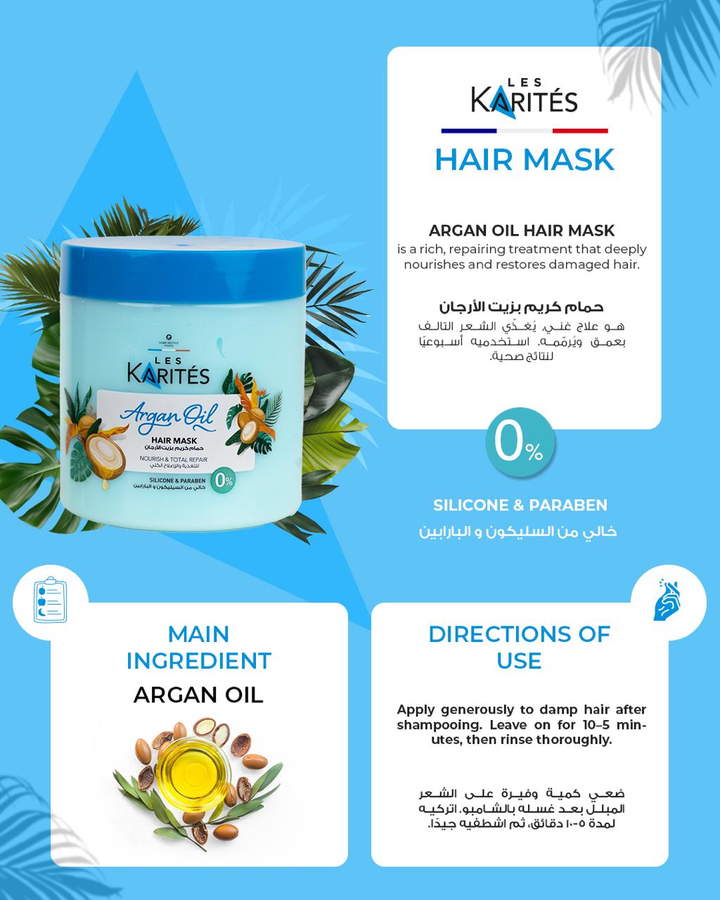 مكونات السيروم وتأثيرها على الشعر Les Karites Argan Oil Hair Mask – 475ml