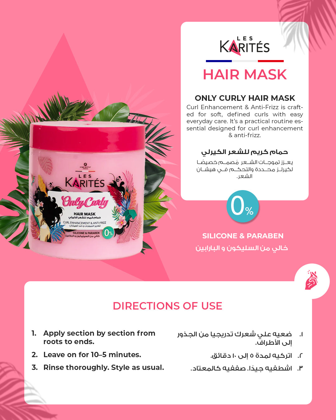 كارتيه حمام كريم كيرلي 475مل Les Karites Only Curly Hair Mask 475ML: سر الترطيب العميق لشعر كيرلي ناعم ومتغذّي