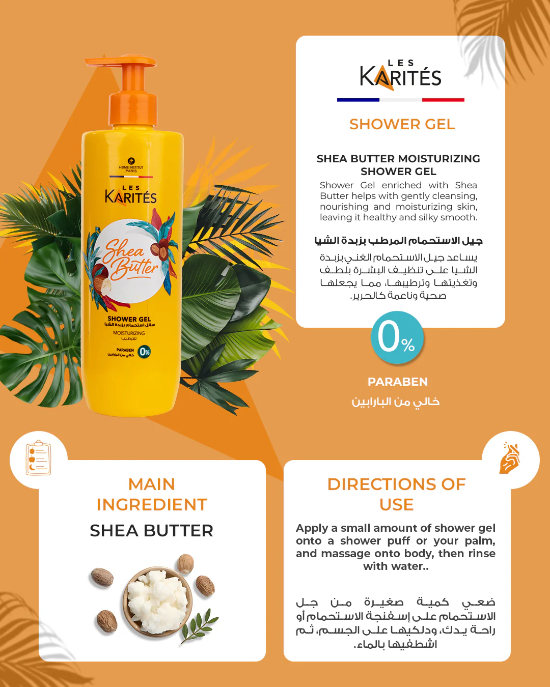 طريقة استخدام شاور جيل كارتيه بزبدة الشيا Les Karites Shea Butter Moisturizing Shower Gel 500 ml