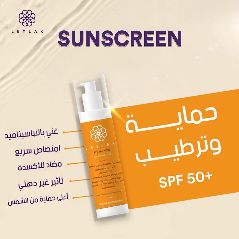 تركيبة فلويد خفيفة بتخطف الأنفاس وتحمي من علامات الشمس Leylak Spf50+ Fluid Anti Dark Spots Sunscreen Spray