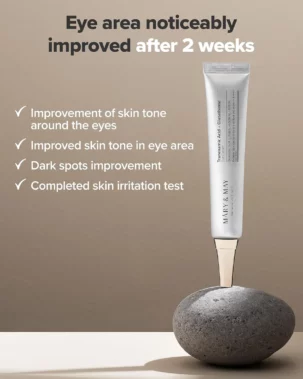 حمض الترانيكساميك بيشتغل على تقليل التصبغات اللي بتظهر تحت العين بسبب الإرهاق أو التعرض للشمس. بيمنع تكوّن الميلانين، وده بيخلي لون الجلد يوحد تدريجيًا مع الاستخدام المنتظم.