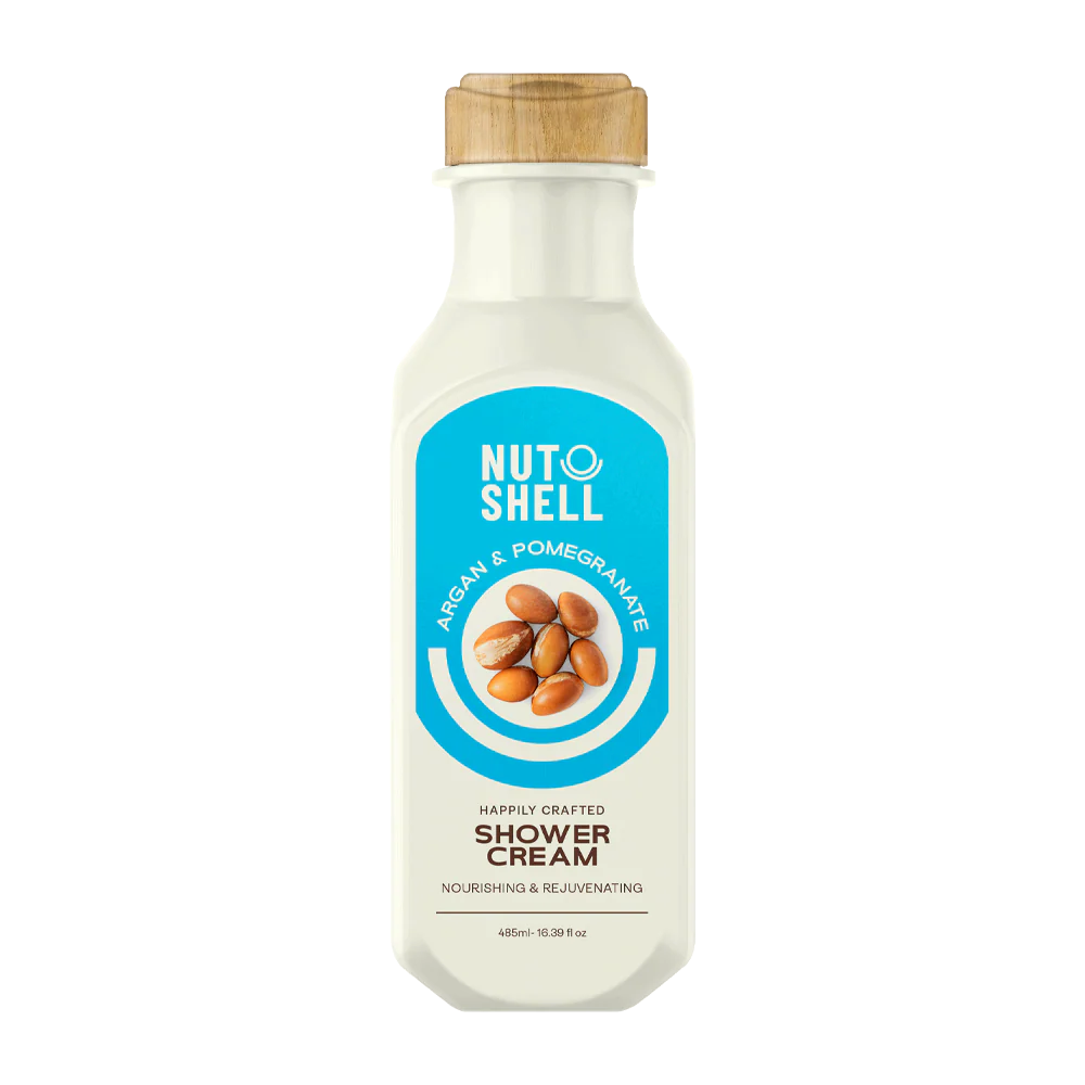 نوت شيل كريم استحمام بالأرجان والرمان Nutshell Argan and Pomegranate Shower Cream– نعومة وترطيب من أول شاور! تركيبة طبيعية تنظف بلطف، تغذي الجلد، وتسيب ريحة فاكهية دافئة تدوم. مثالي للبشرة الحساسة والجافة.