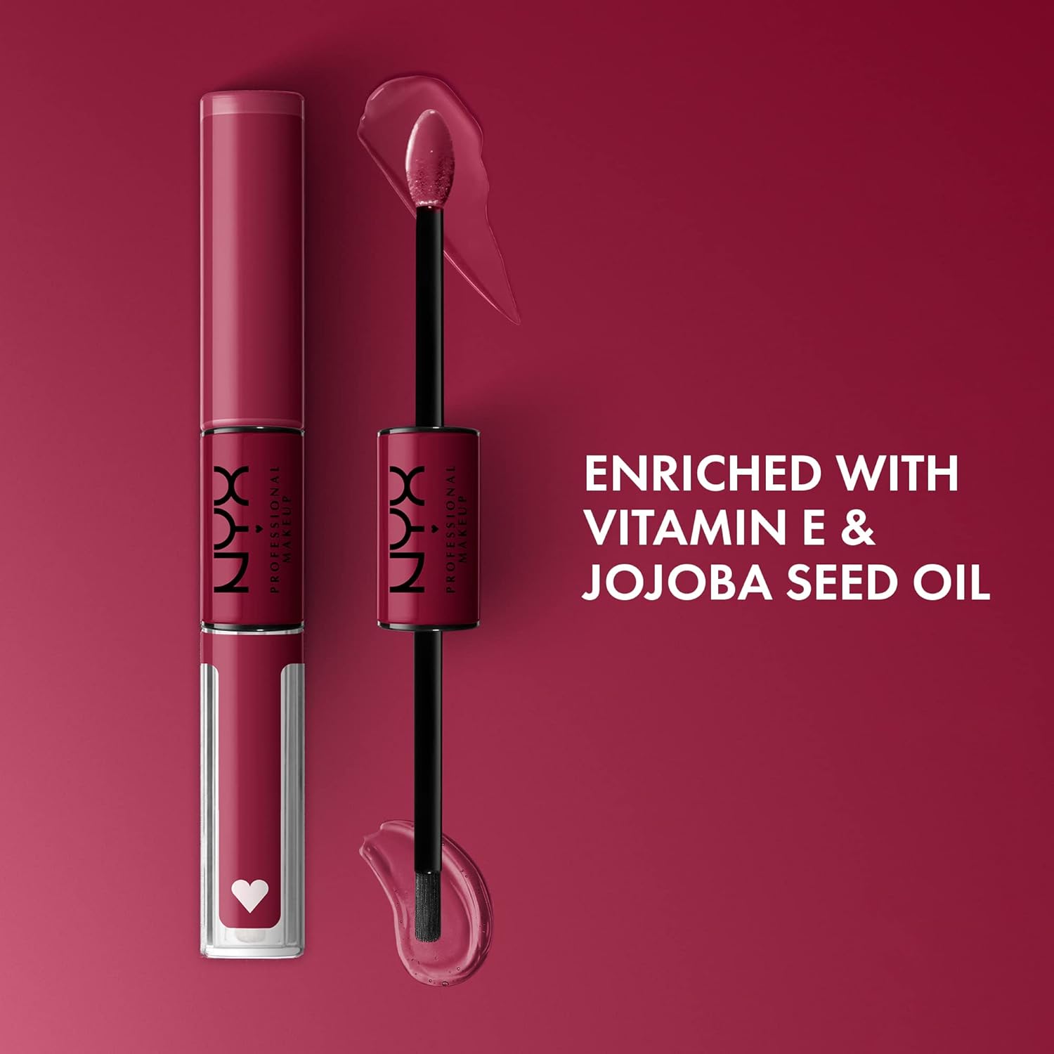 تركيبة NYX شاین لود درجة ١٦: لون ثابت ولمعة زجاجية في عبوة مزدوجة NYX Shine Loud Long-Lasting Liquid Lipstick with Clear Lip Gloss 16world shaper