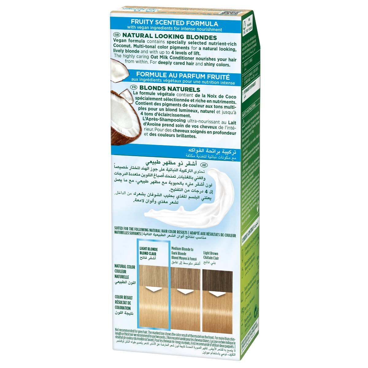 الدرجة دي من باليت مصممة مخصوص علشان تديكي لون أشقر فاتح جدًا، مناسب للبشرة الفاتحة والمتوسطة، وبيبرز ملامحك بشكل طبيعي. التركيبة غنية بزيت جوز الهند وحليب الشوفان، وده بيخلي الشعر مش بس ياخد اللون، لكن كمان يفضل ناعم ومترطب بعد الصبغة. كمان الصبغة دي بتغطي الشعر الأبيض بنسبة 100%، وبتديكي نتيجة احترافية في البيت من غير ما تحتاجي تروحي للكوافير.