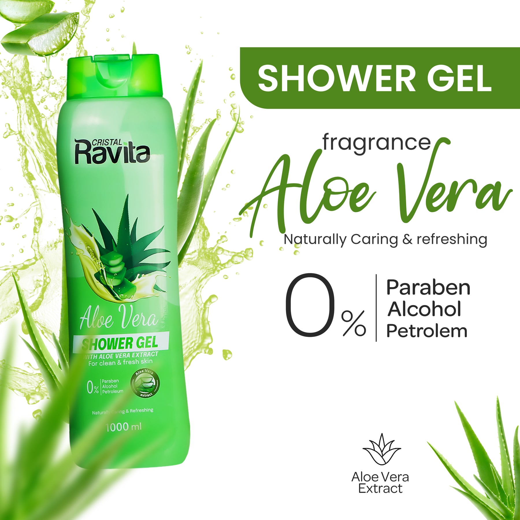كريستال رافيتا شاور جيل ١٠٠٠مل الوفيرا Ravita Aloe Vera Shower Gel : انتعاش طبيعي وترطيب ناعم لكل أنواع البشرة