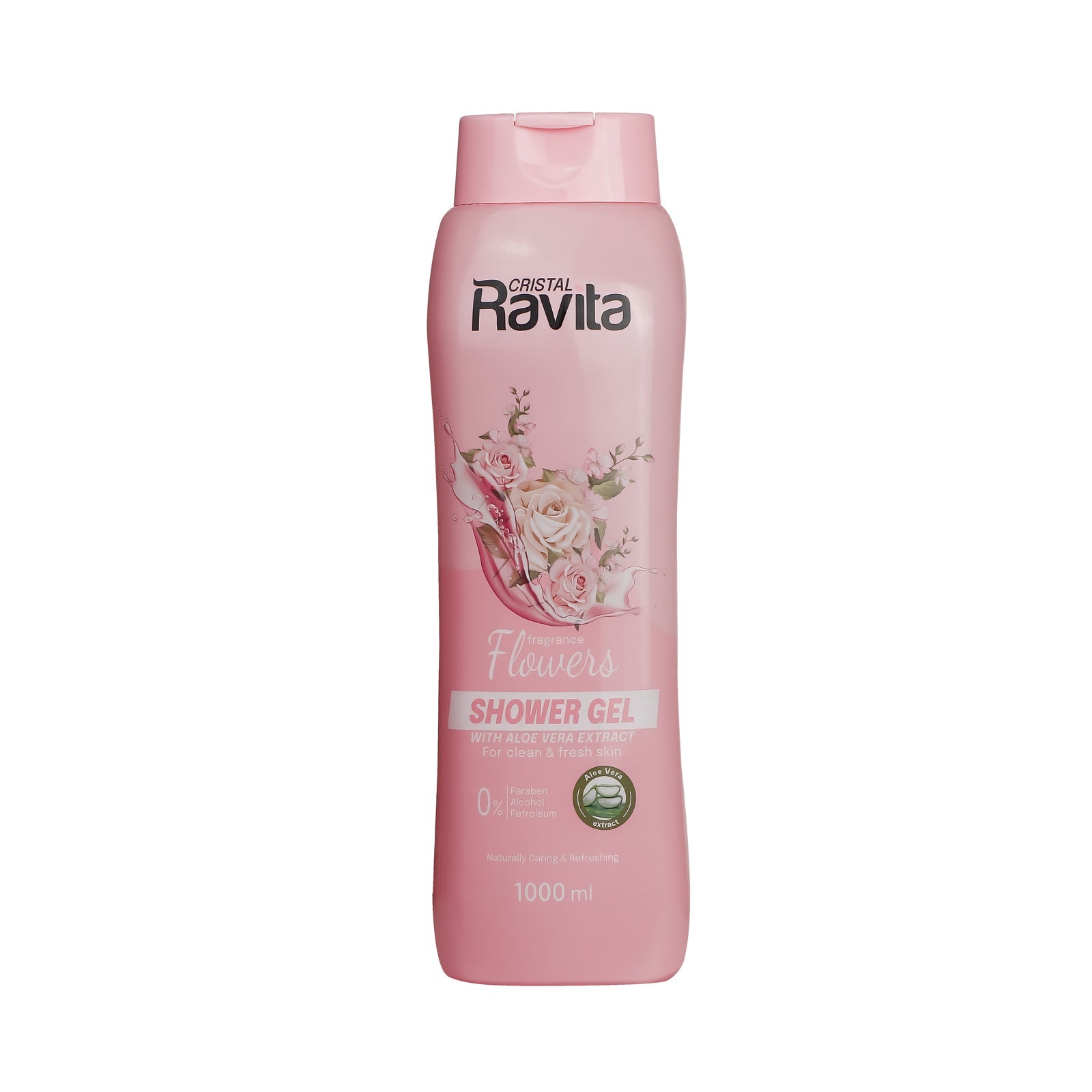 كريستال رافيتا شاور جيل ١٠٠٠مل ورد Ravita shower gel flowers with aloe vera extract : دوش بريحة الورد بينعش الجسم ويخليكي ملكة في كل مرة