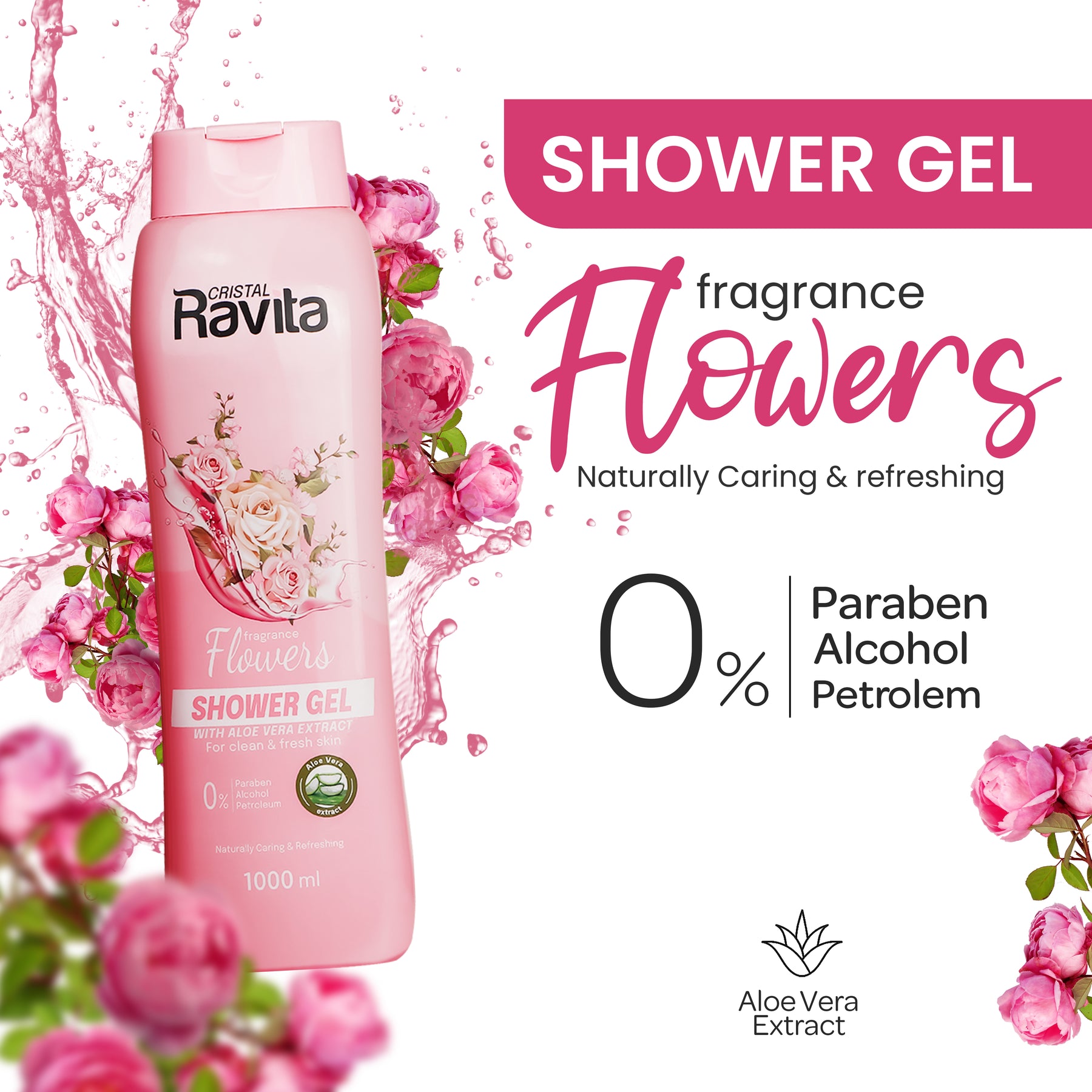 كريستال رافيتا ورد هو سر انتعاشك وأنوثتك اليومية Ravita shower gel flowers with aloe vera extract