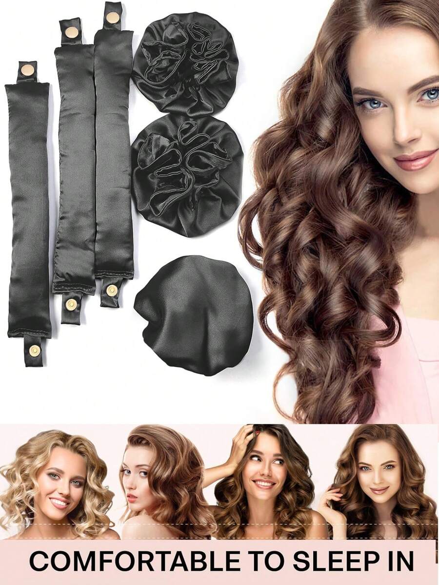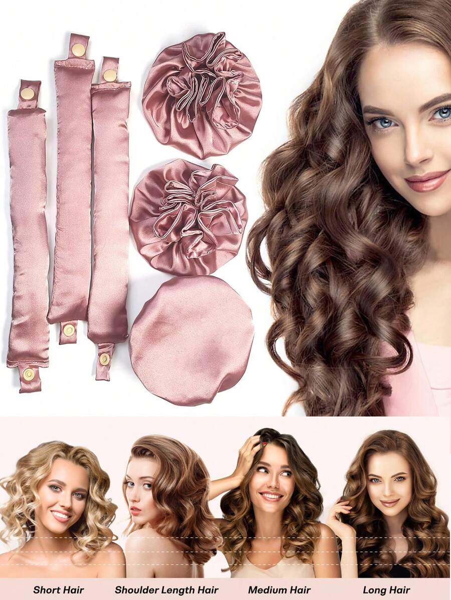 المجموعة مش بس عملية، دي كمان أنيقة جدًا وتديكي إحساس بالفخامة، سواء كنتي عايزة تستخدميها بالليل علشان تصحي الصبح على ستايل جاهز، أو علشان تحضري نفسك لمناسبة خاصة. ومع الانتظام في استخدامها، هتلاحظي فرق كبير في مظهر وصحة شعرك.