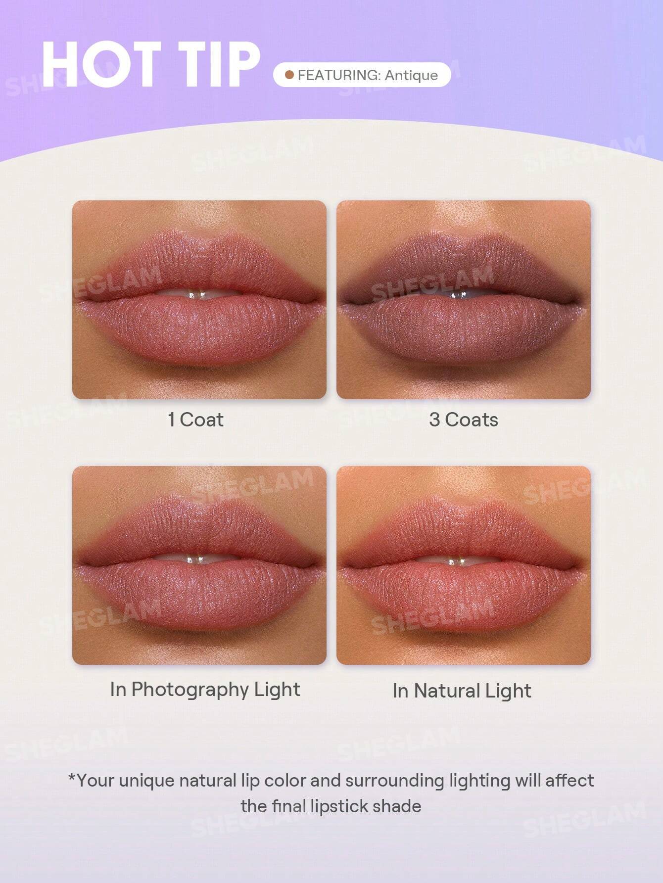 السر في SHEGLAM Glitter Whip Liquid Lipstick هو “التفعيل بالضغط”. بمجرد ما بتوزعي الطبقة وتسيبيها تنشف ثواني، وتضغطي شفايفك، جزيئات الجليتر الميكروسكوبية بتتحرر وبتعمل انعكاس للضوء ملوش حل. shiglam lipstick glitter whip بيعتمد على جزيئات ناعمة جداً مش بتحسي بخشونتها خالص، وده اللي بيخليه مريح في اللبس لساعات طويلة.