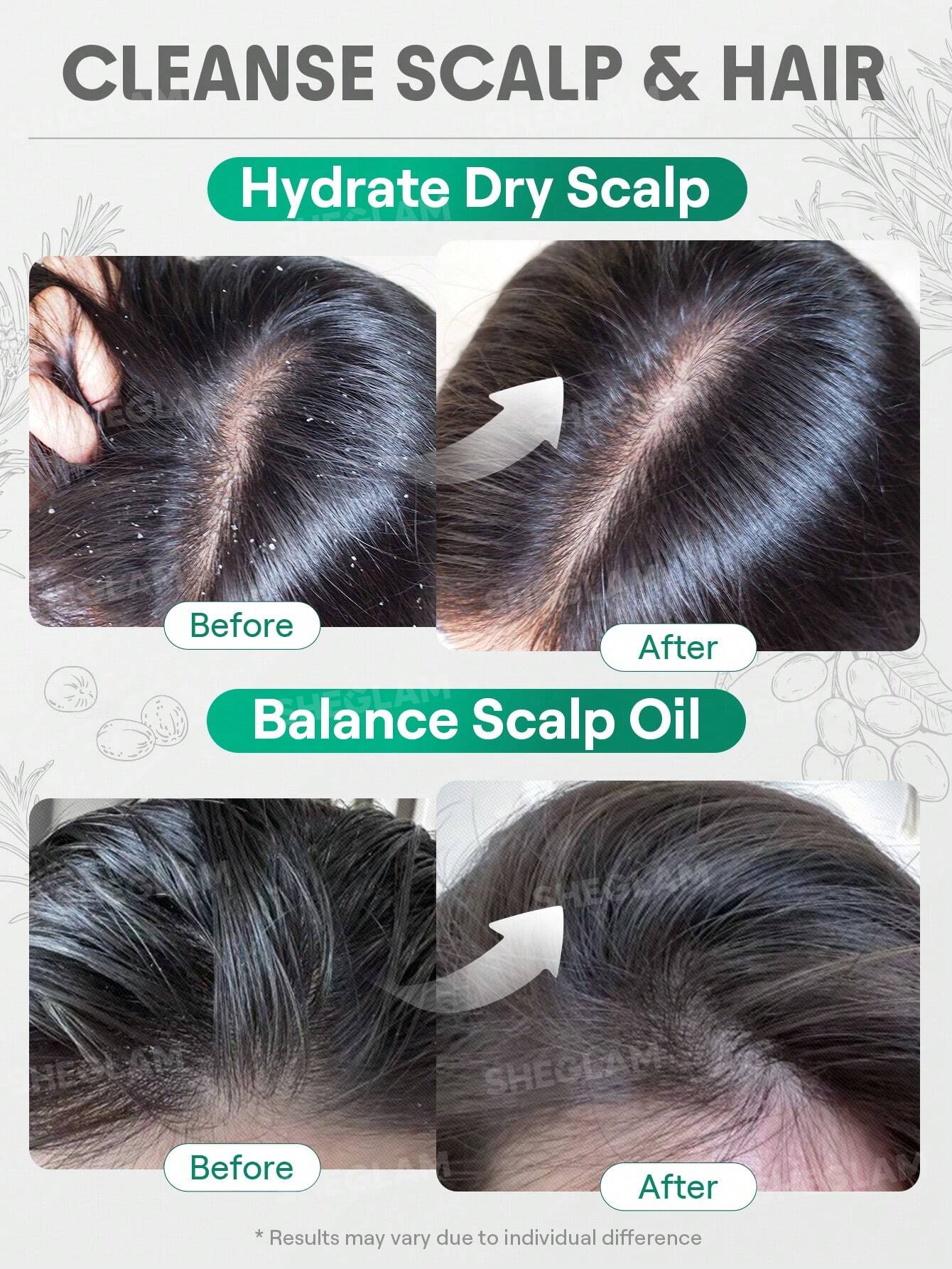 - بيقلل من القشرة ويخلي فروة الرأس أنظف.