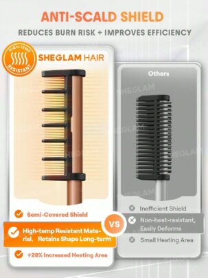 مشط شيجلام الحراري المقاوم للحروق Sheglam Anti-Burn Hot Comb هو أداة حديثة لتصفيف الشعر بتجمع بين الأمان والسرعة والنتيجة الطبيعية. المشط مصمم بتكنولوجيا عازلة للحرارة تمنع أي حروق، وبيوزع السخونة بشكل متوازن على الشعر عشان يديكي فرد ناعم ولمعة صحية من غير تلف. بيشتغل بسرعة، مناسب لكل أنواع الشعر سواء ناعم أو كيرلي أو خشن، وكمان وزنه خفيف وسهل الاستخدام في البيت أو السفر.