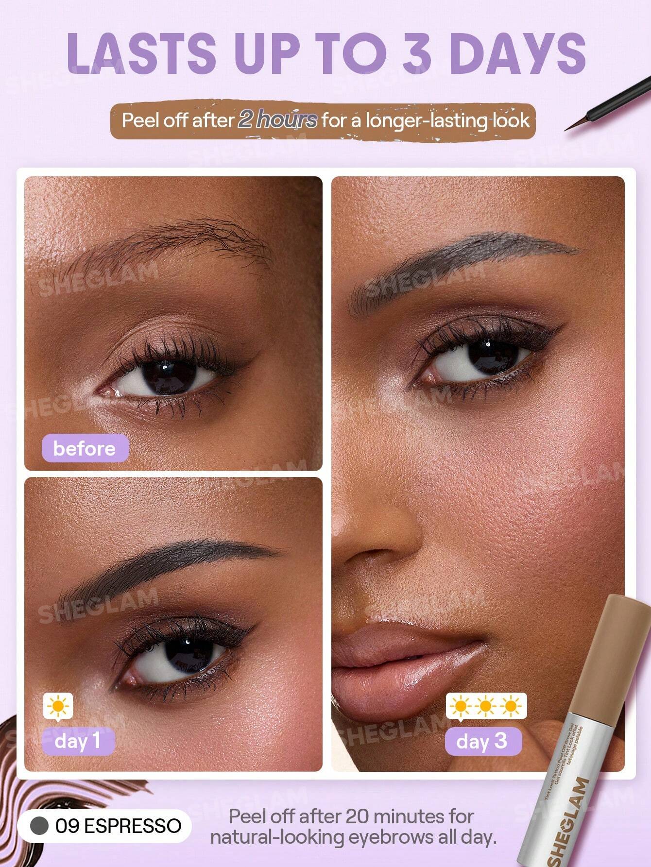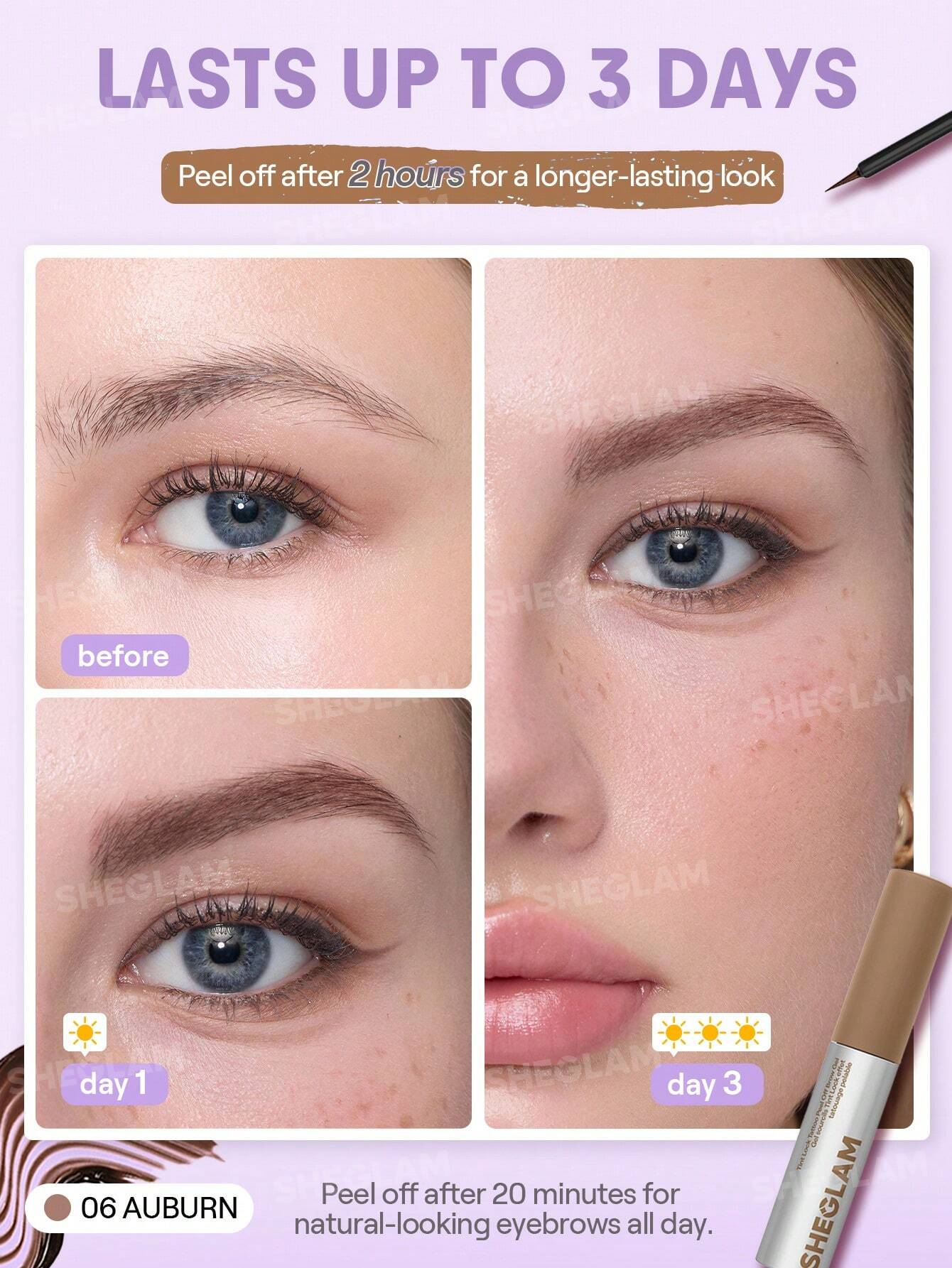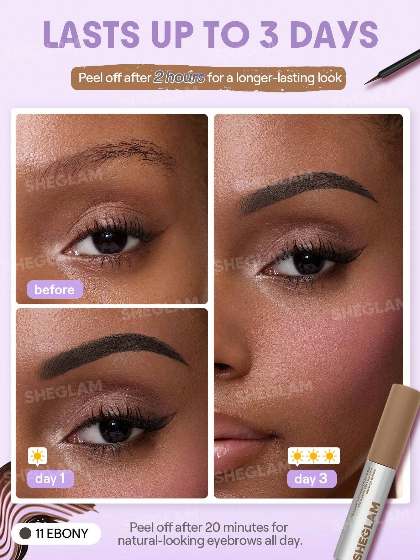 طريقة الاستخدام المثالية Sheglam Tint Lock Tattoo Peel Off Brow Gel