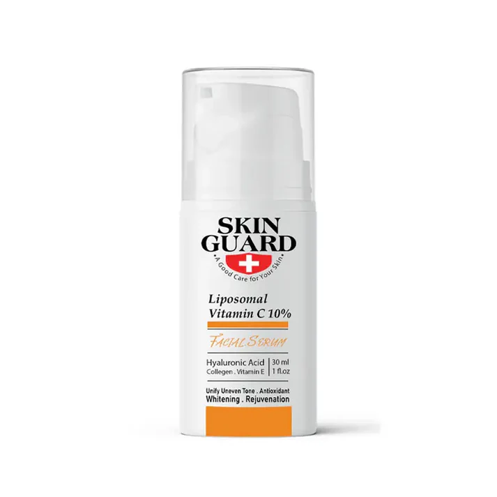 SKIN GUARD Vitamin C Serum 30ml مش مجرد سيروم، ده حل عملي وسريع لمشاكل زي التصبغات، التجاعيد، وفقدان النضارة. بيجمع بين قوة فيتامين سي ومضادات الأكسدة علشان يديكي بشرة صافية، مشدودة، ومليانة إشراقة. لو عايزة منتج فعّال يحافظ على شباب بشرتك ويخليها متألقة، السيروم ده هو اختيارك المثالي.