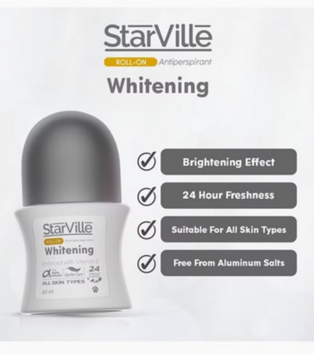 ستارفيل رول وايتنينج رصاصي StarVille Roll On antiperspirant Whitening – الحل العملي للتفتيح والعناية برائحة منعشة تدوم طول اليوم
