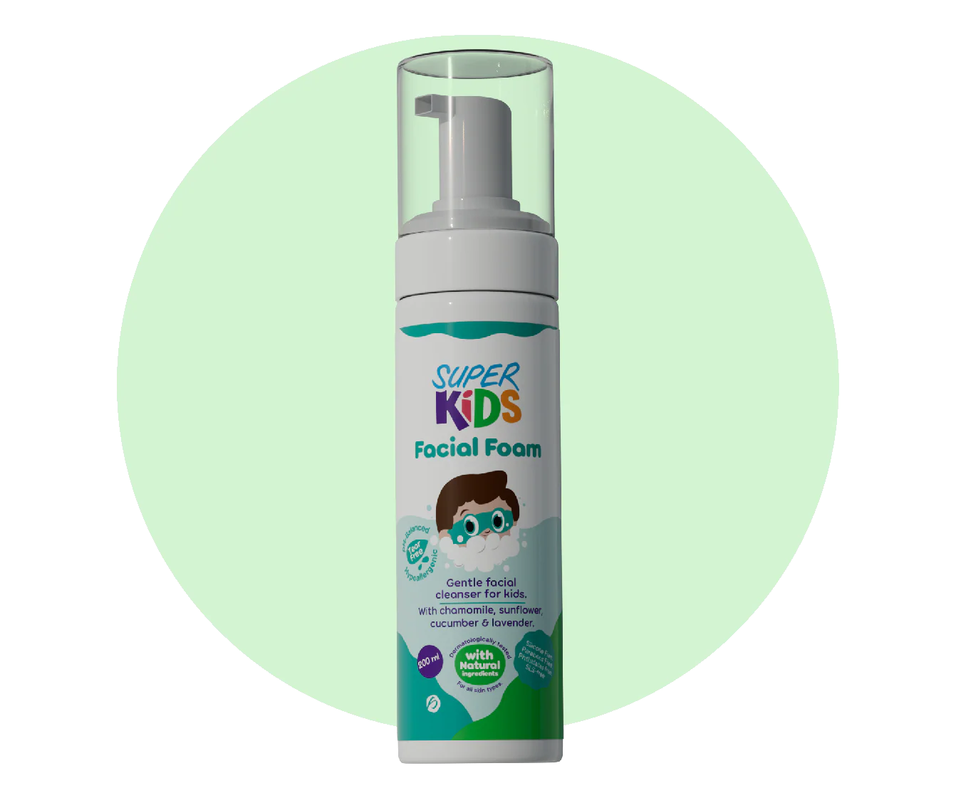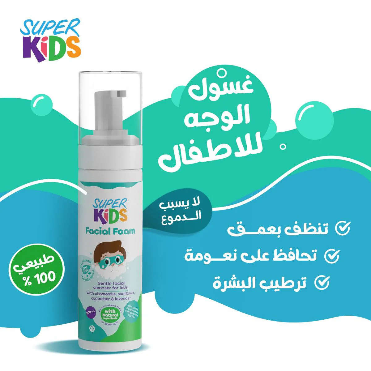 سوبر كيدز فوم للوجه ٢٠٠مل Superkids Facial Foam 200 ml – غسول ناعم ينضف بشرة طفلك ويحافظ على ترطيبها الطبيعي!