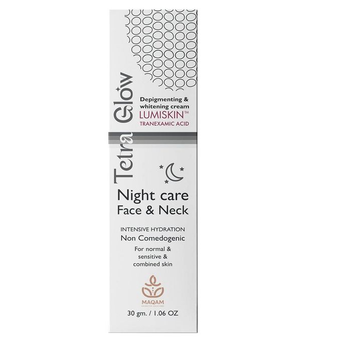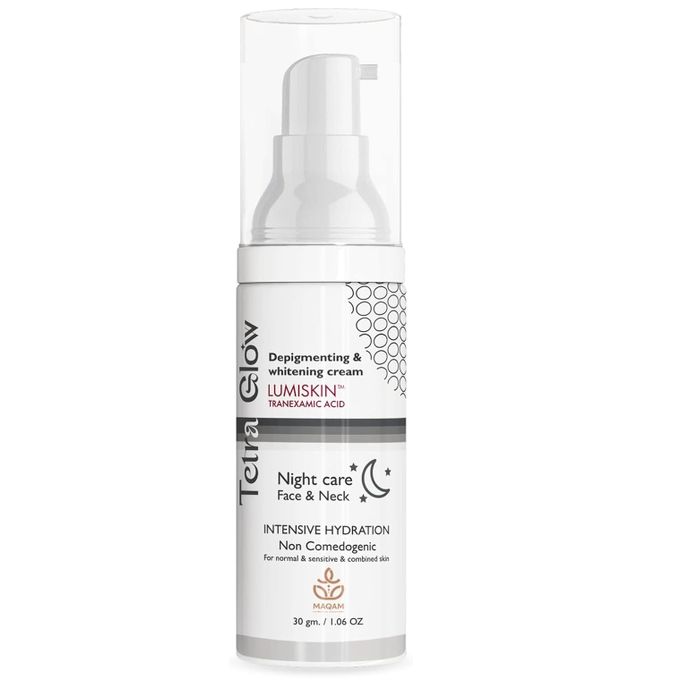 كريم تيترا جلو لتفتيح الوجه والرقبة ٣٠ جم ليلي Tetra Glow Face Whitening Cream Night Care 30 Gm: سر الإشراقة الليلي لبشرة صافية ومضيئة