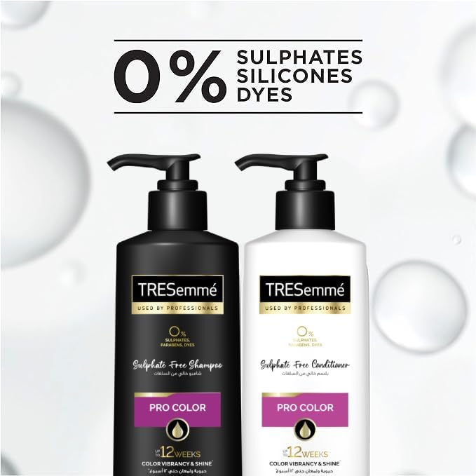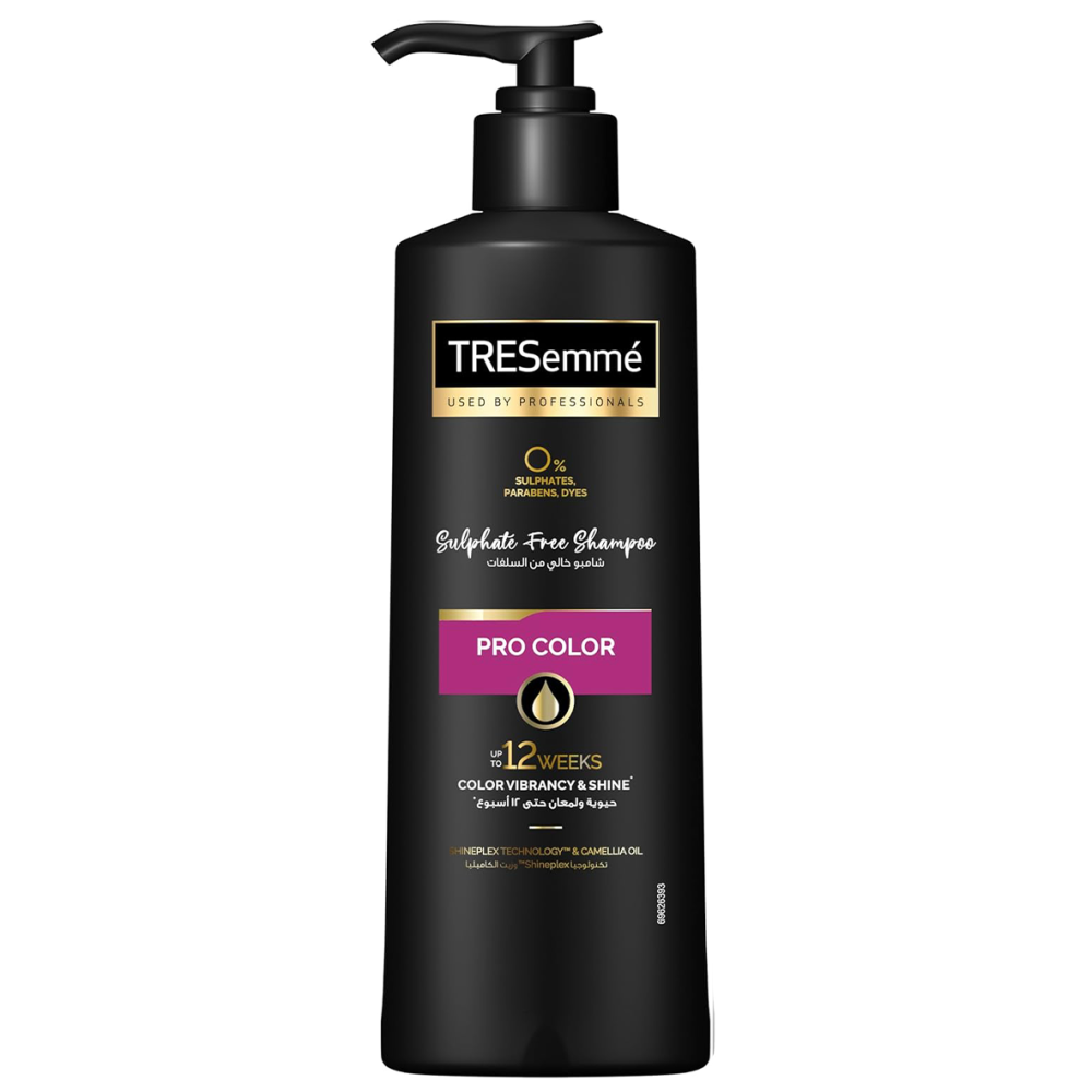 ترسيمي برو كلر –Tresemme Pro Color Shampo 250 Ml شامبو يحافظ على لون شعرك ويخليه يبرق! تركيبة خالية من السلفات، بزيت الكاميليا وتقنية Shineplex™، تنظف بلُطف وتحافظ على اللون حتى ١٢ أسبوع. يناسب الشعر المصبوغ والكيراتين، وبيسيب شعرك ناعم، لامع، وريحته حلوة تدوم.